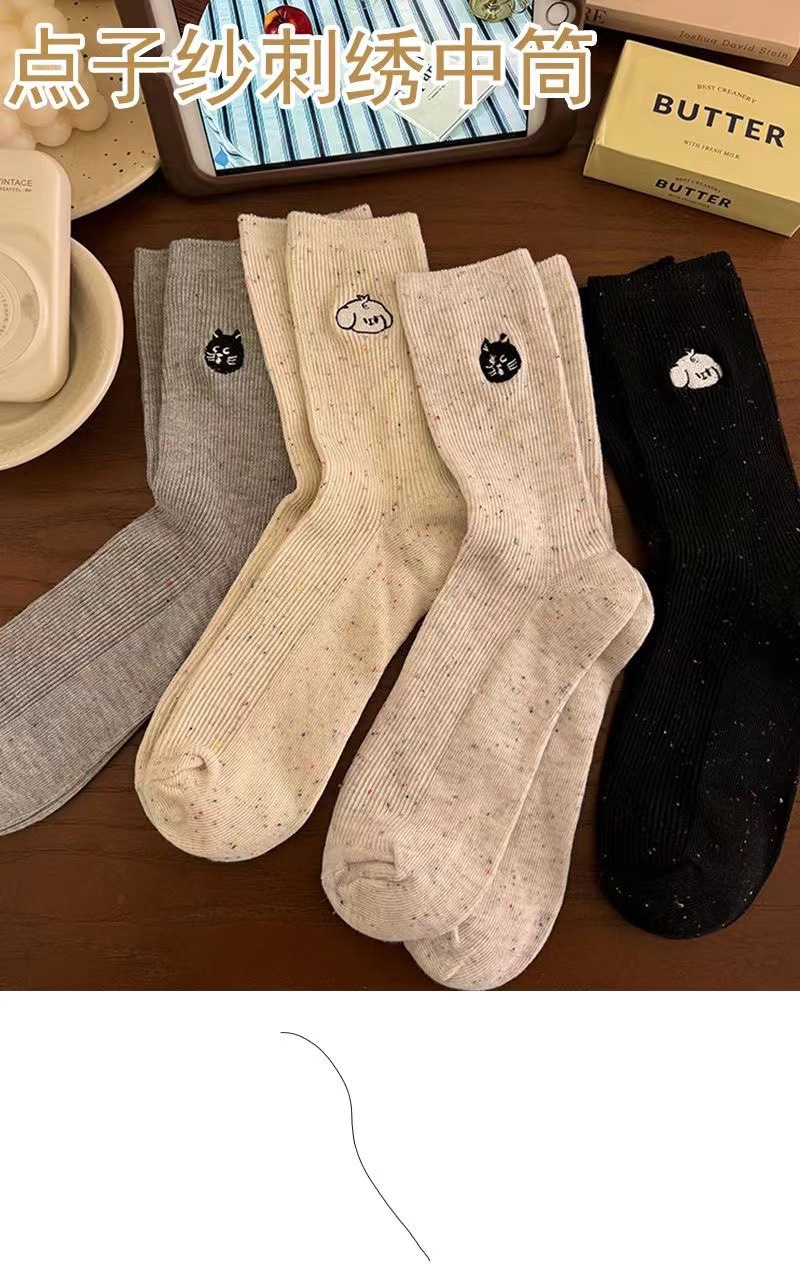 양말 여성 여름 얇은 만화 강아지 고양이 튜브 양말 통기성 검은 일본인 조커 스포츠 양말 도매스토어 가기
