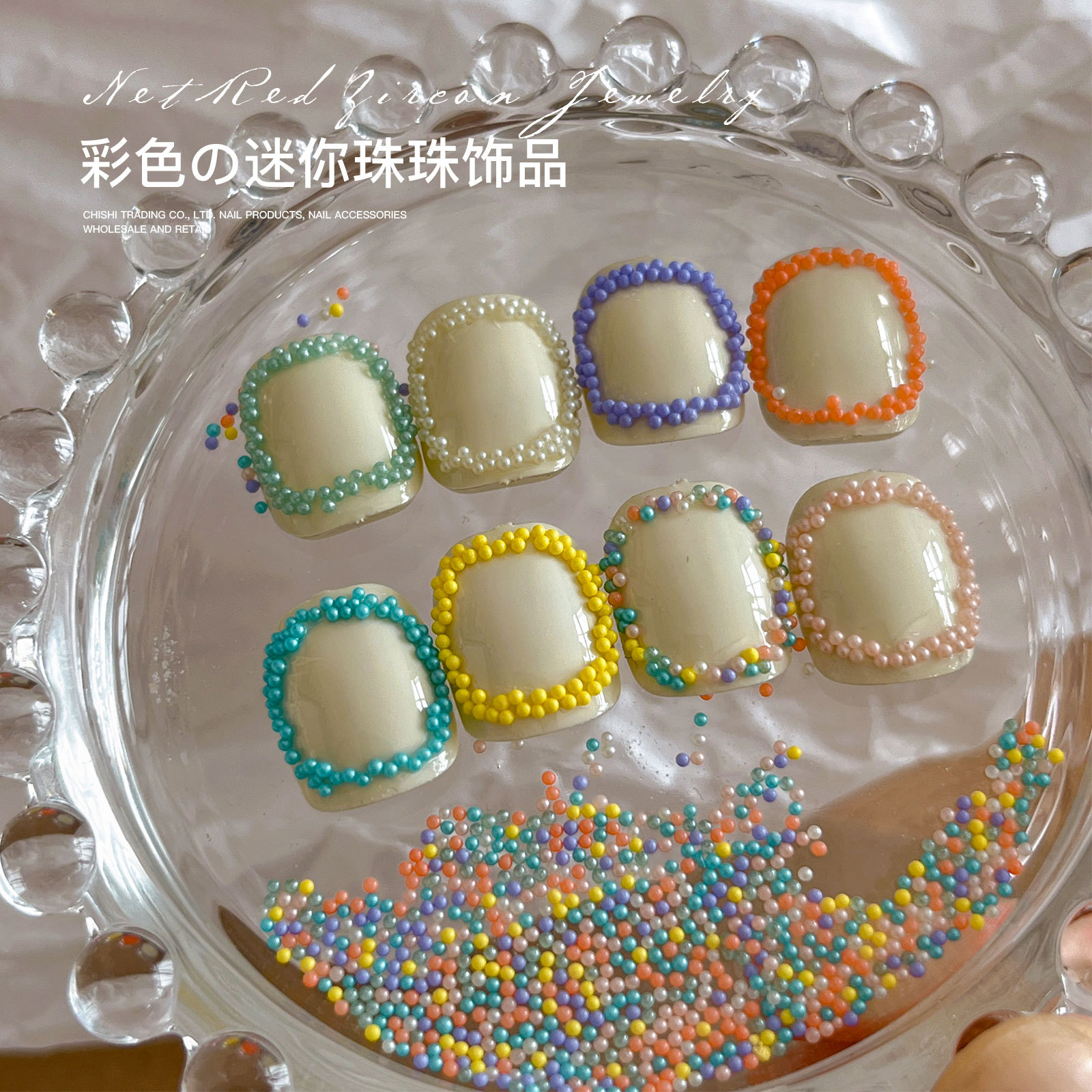 그물 붉은 새 색상 구슬 네일 쥬얼리 캔디 컬러 마카롱 버블 비드 수지 네일 액세서리 도매