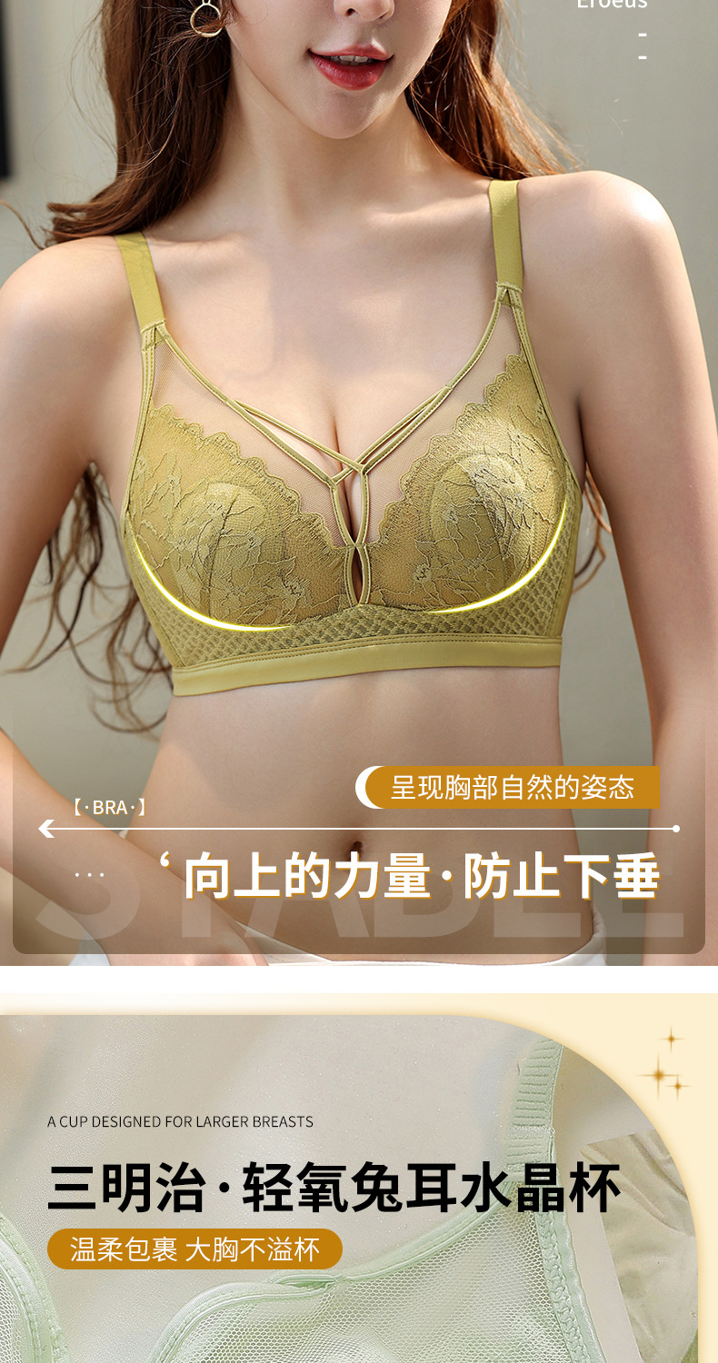 토끼 귀를 가진 섹시한 꽃 레이스 크로스 가슴 브래지어 부활 잔디 통기성 라이닝 패션 속옷