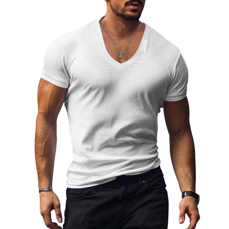 AliExpress 남성 티셔츠 국경 최고 유럽 및 미국 대외 무역 남성 V 넥 솔리드 컬러 플러스 사이즈 캐주얼 티셔츠 짧은 소매 남성 의류