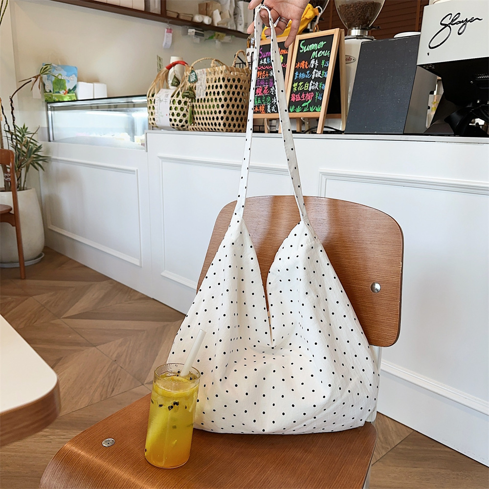 45262 새로운 웨이브 포인트 캔버스 가방 여성 대용량 가방 대학생 클래스 캔버스 가방 틈새 어깨 가방