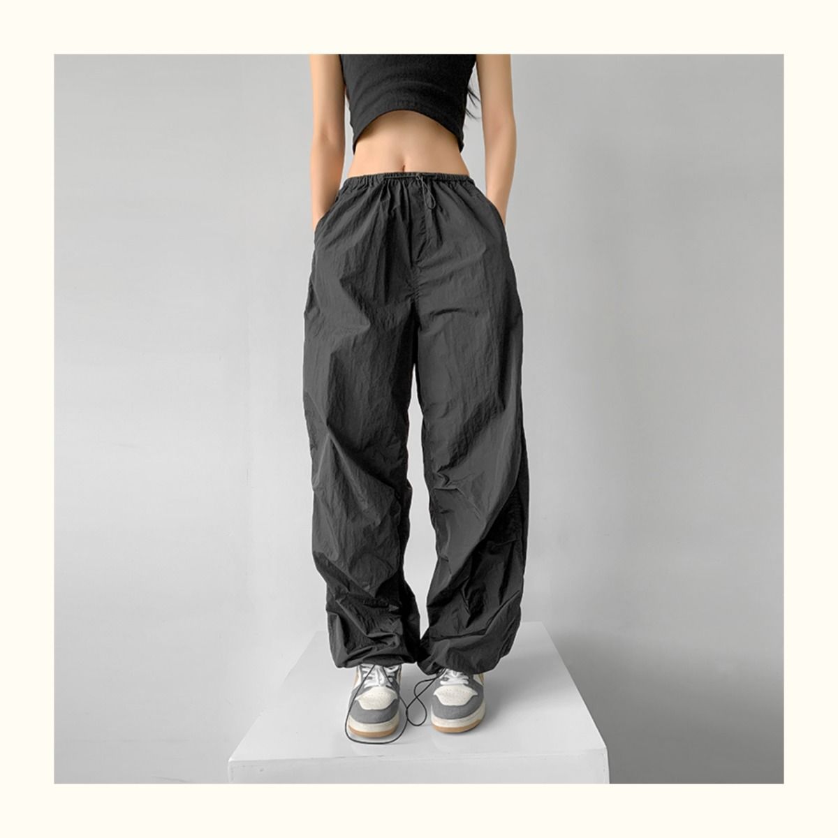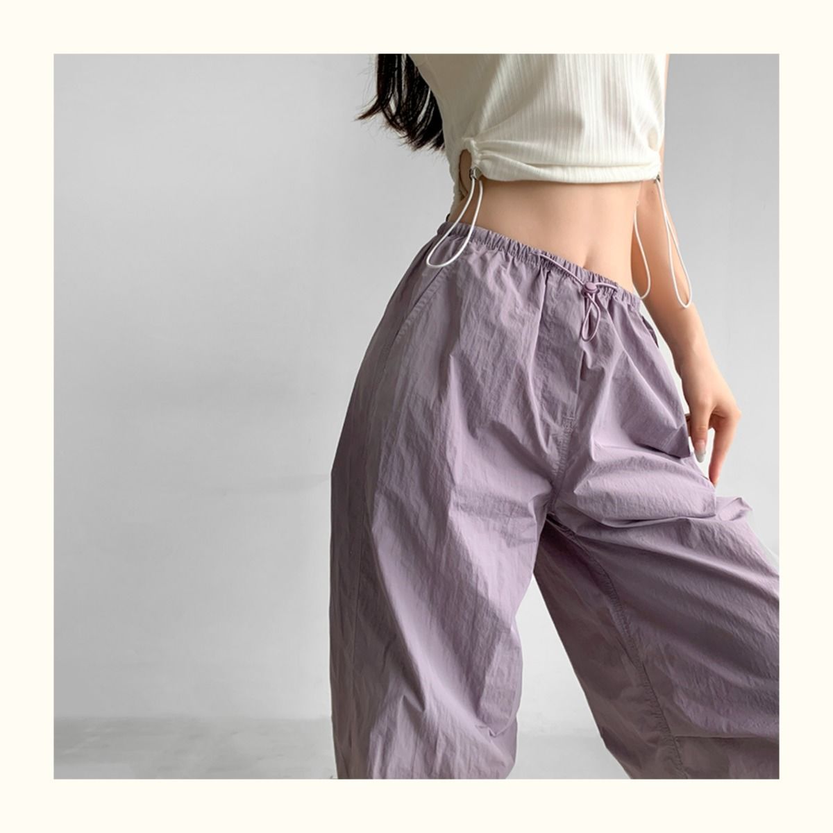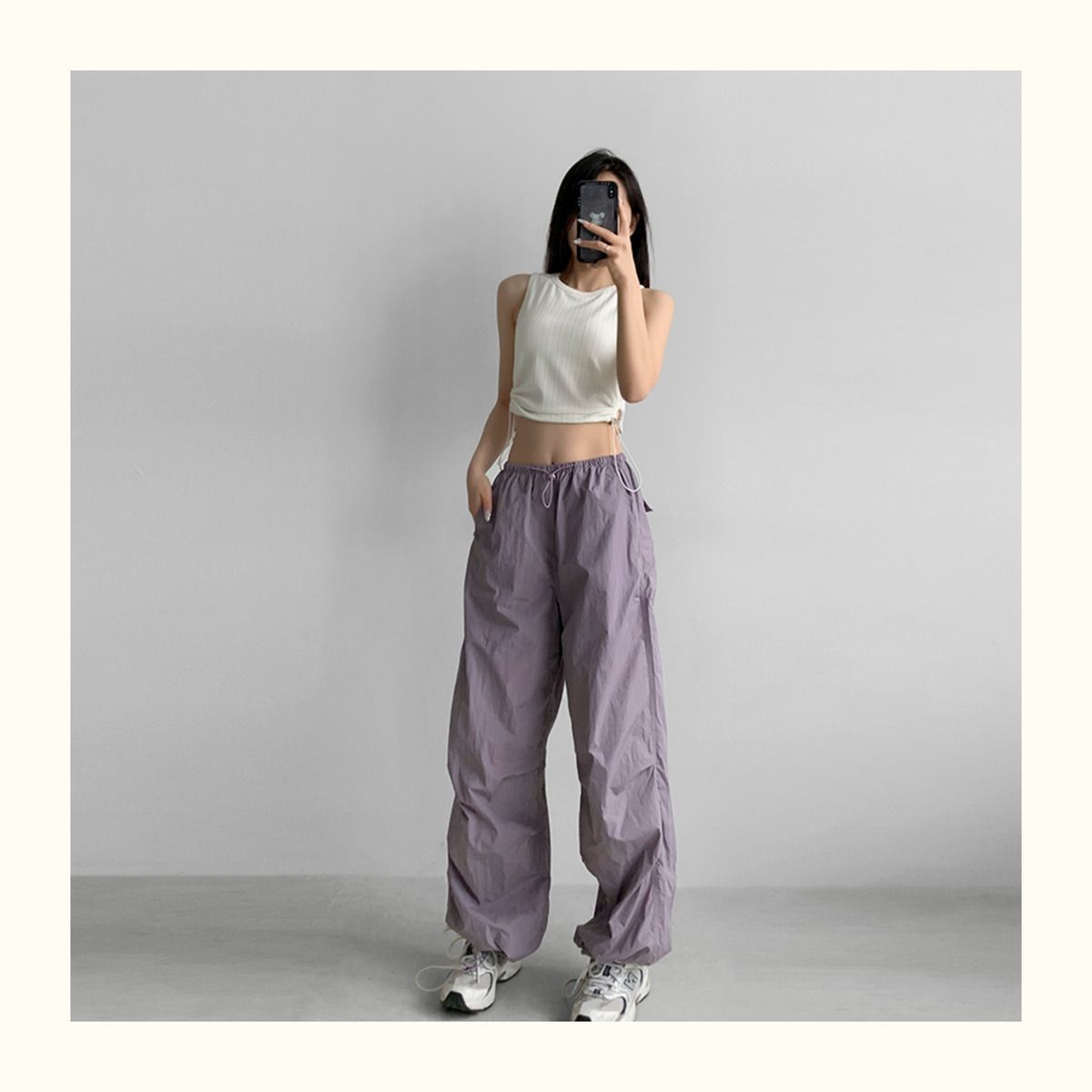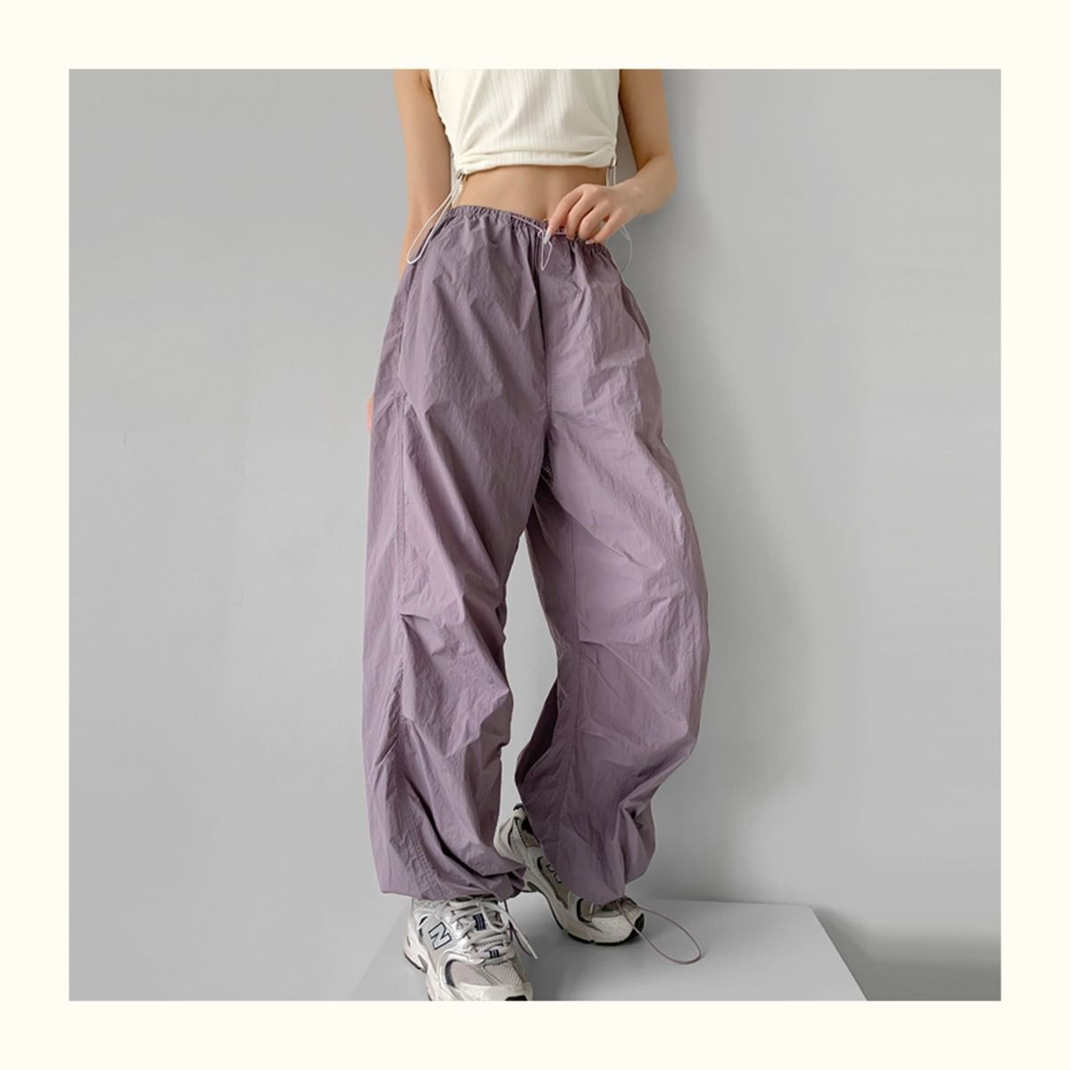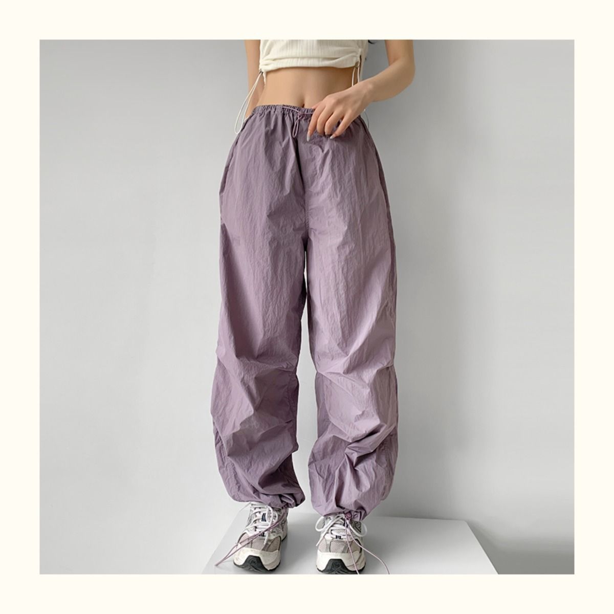 아메리칸 스트리트 벨라 얇은 자외선 차단제 빠른 건조 스포츠 ordwork 바지 여성의 여름 느슨한 발 잡아 당기는 낙하산 바지스토어 가기