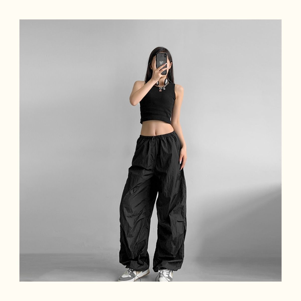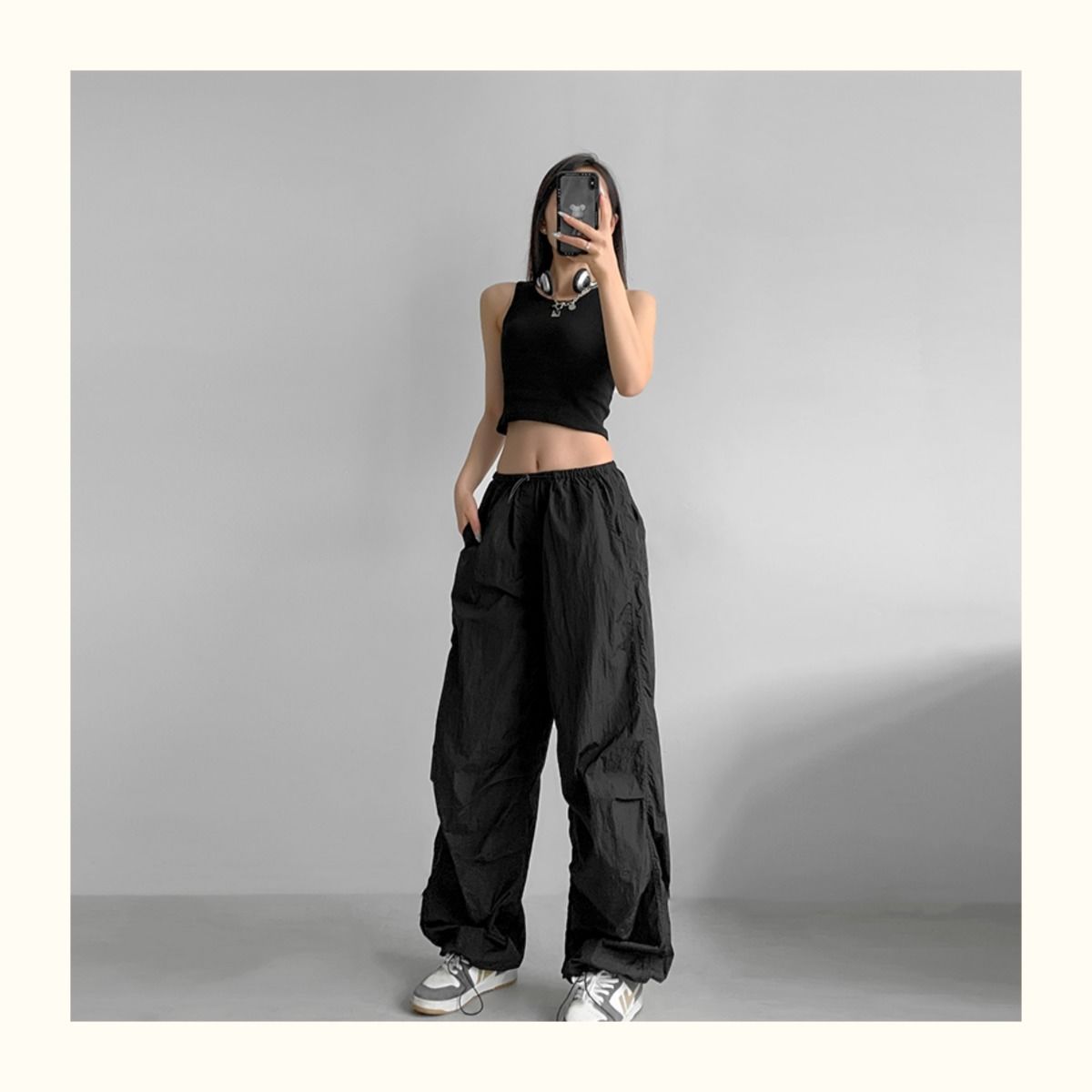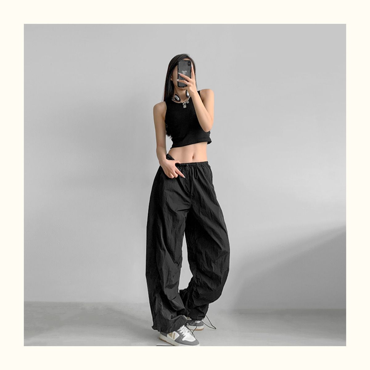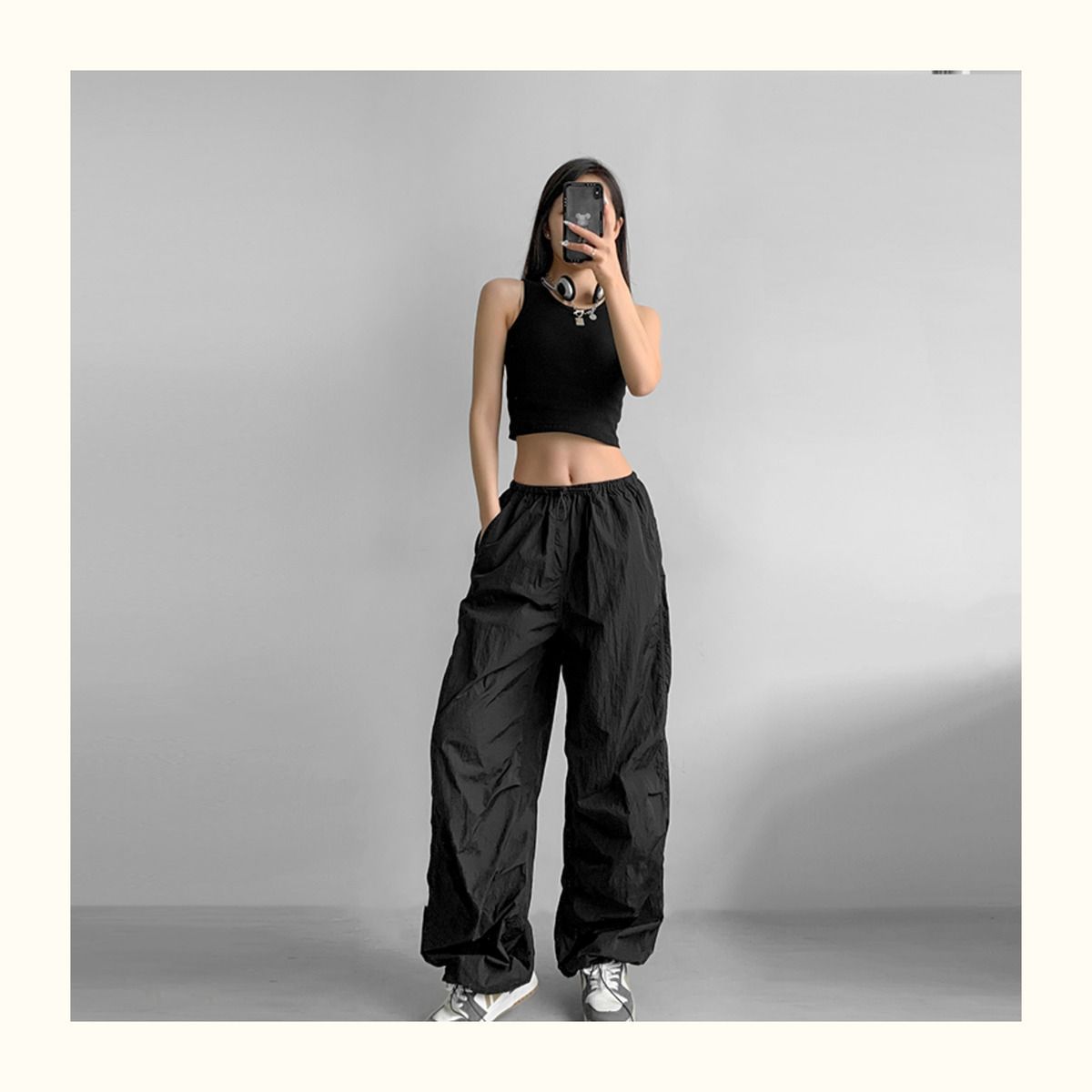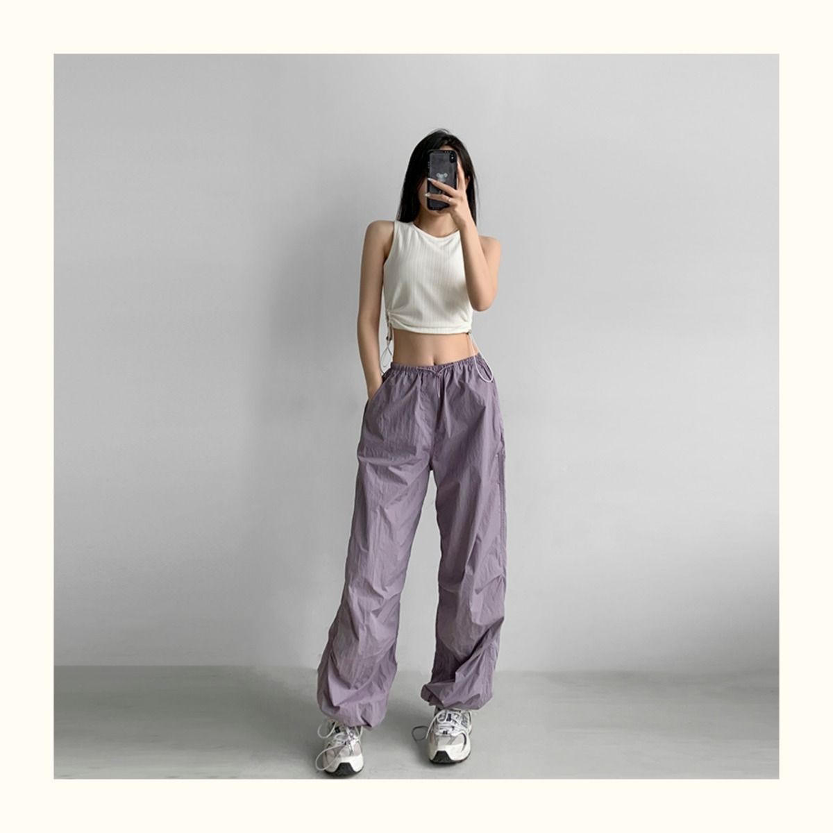 아메리칸 스트리트 벨라 얇은 자외선 차단제 빠른 건조 스포츠 ordwork 바지 여성의 여름 느슨한 발 잡아 당기는 낙하산 바지스토어 가기