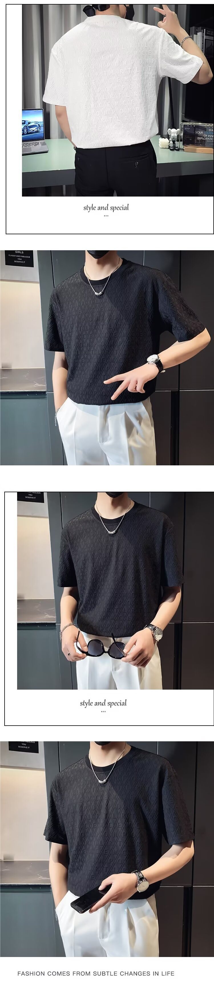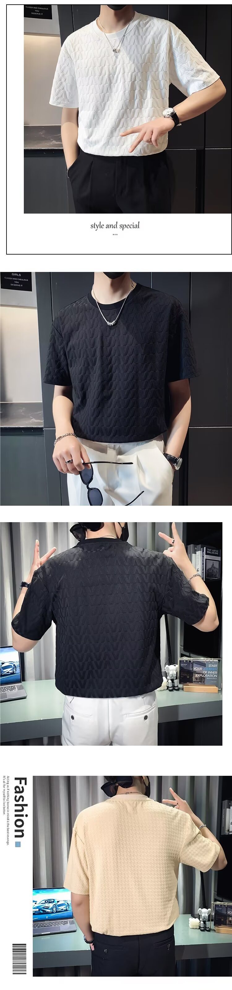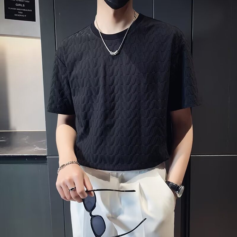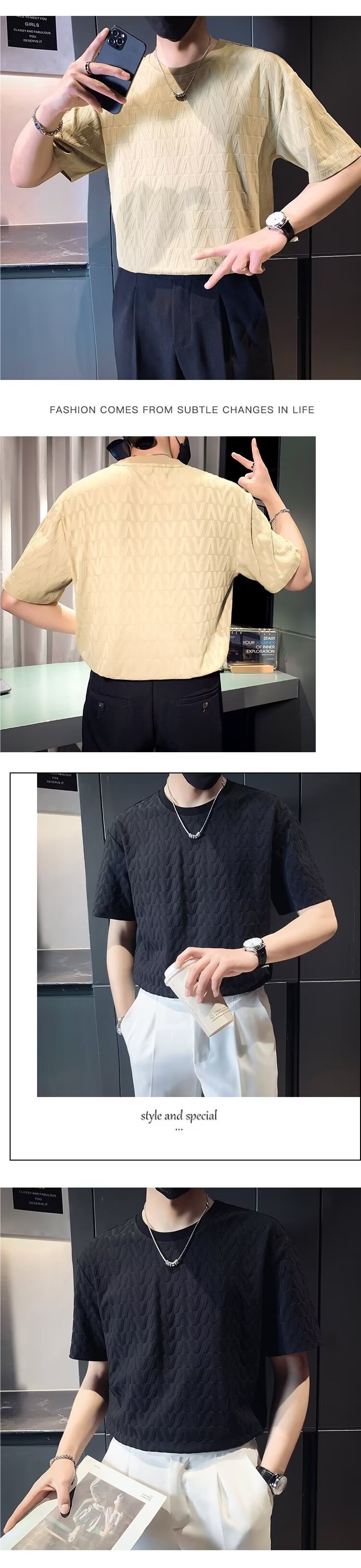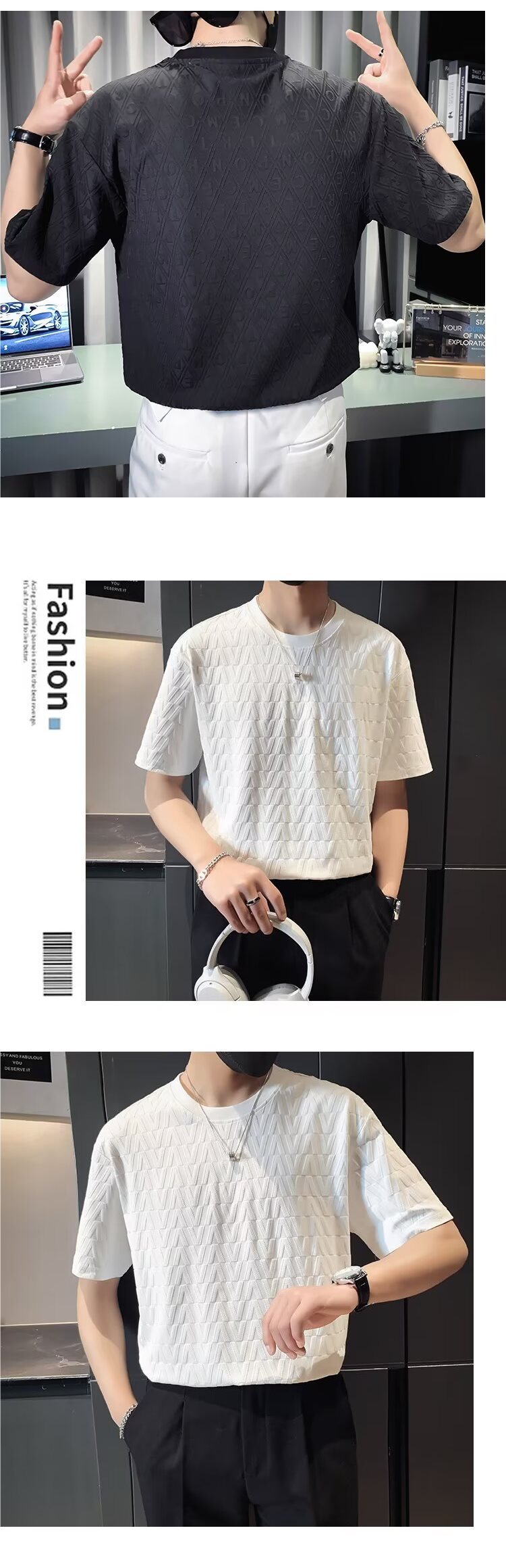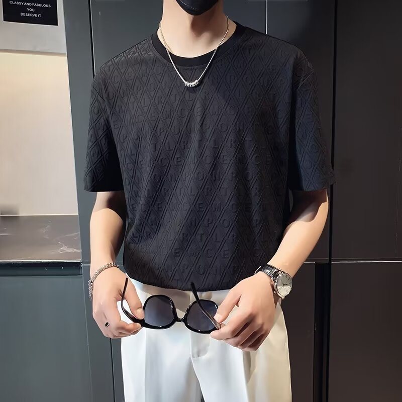 여름 둥근 목 반팔 티셔츠 남성용 질감 3D 편지 전체 인쇄 단색 반소매 티셔츠 탑 루즈 더피 핸섬 트렌디스토어 가기
