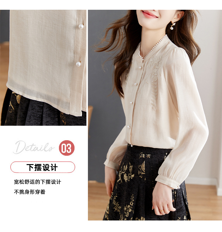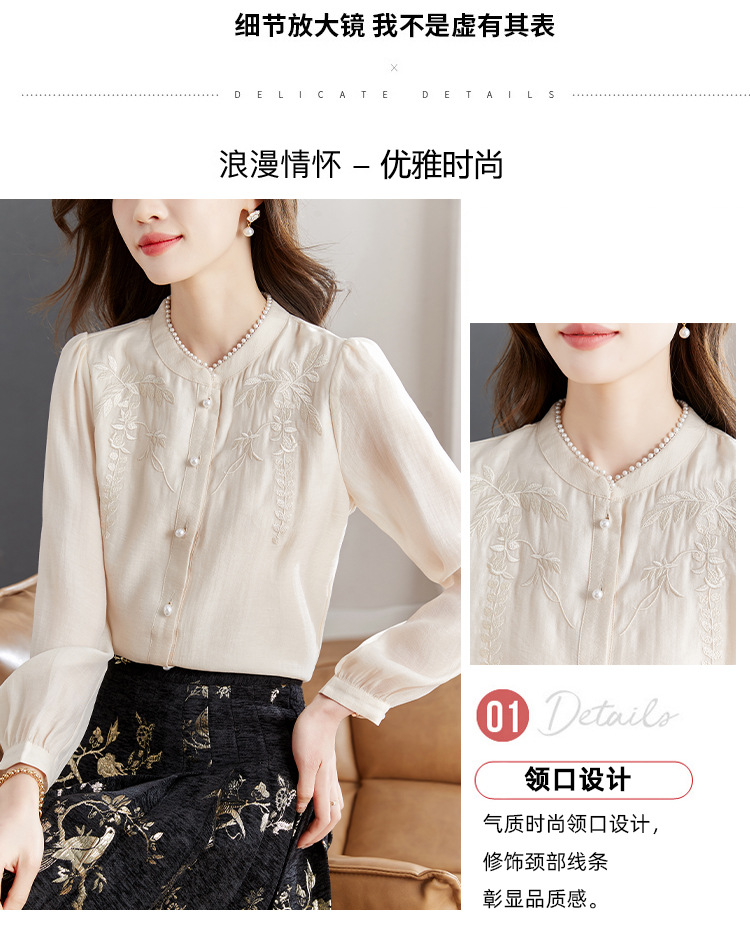 패션 새로운 중국 긴팔 쉬폰 셔츠 여자 봄 2024 봄 새로운 국가 스타일 자수 올 매치 셔츠 탑스토어 가기