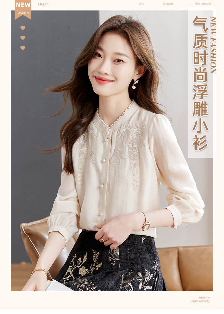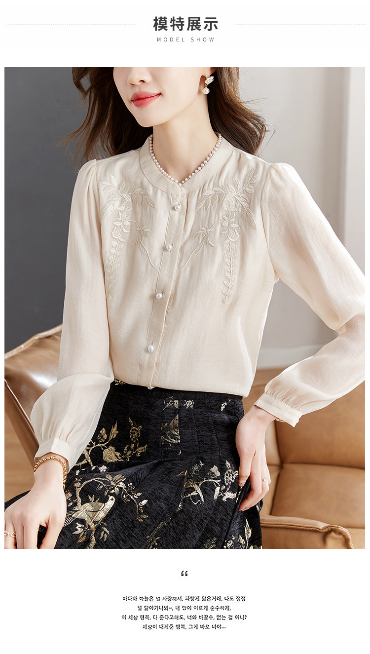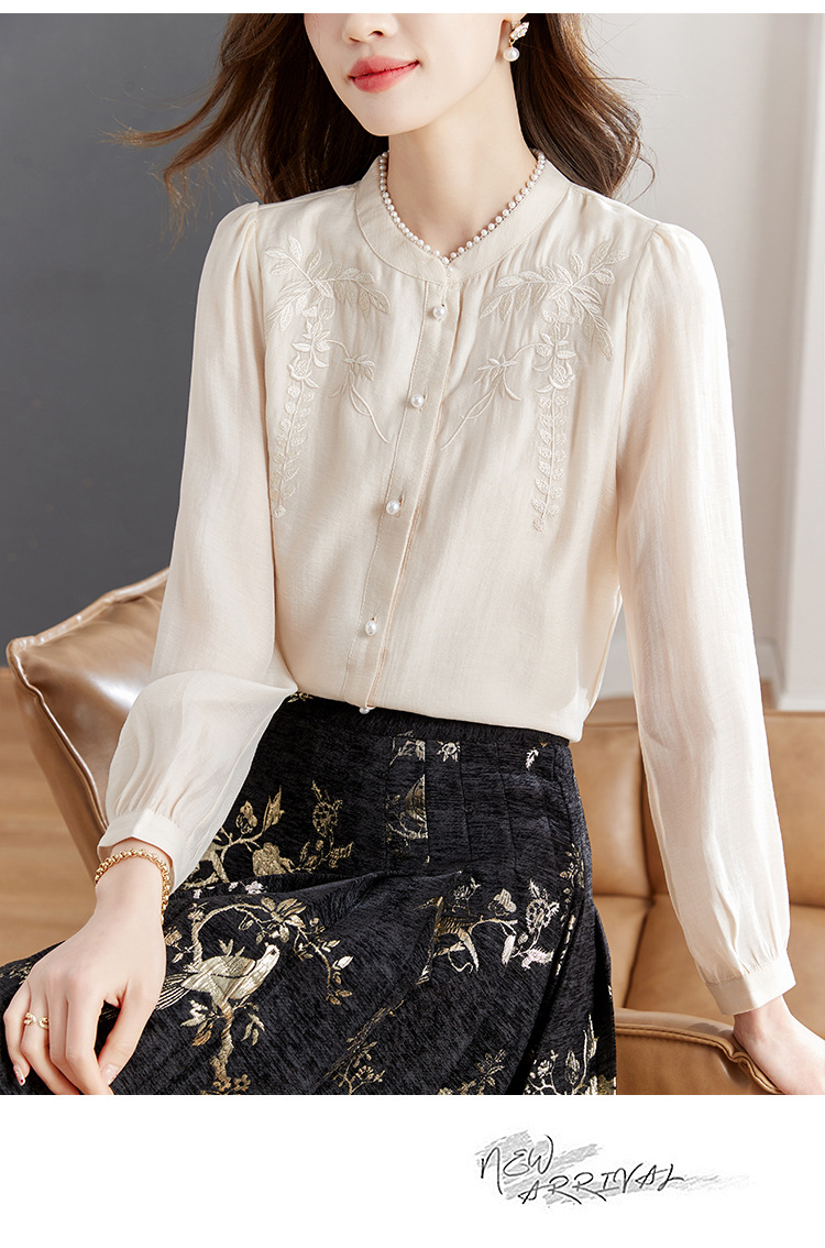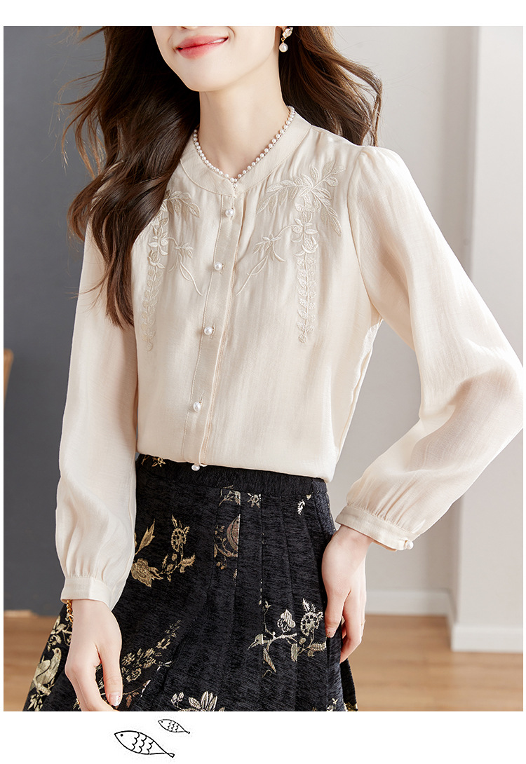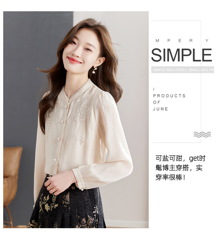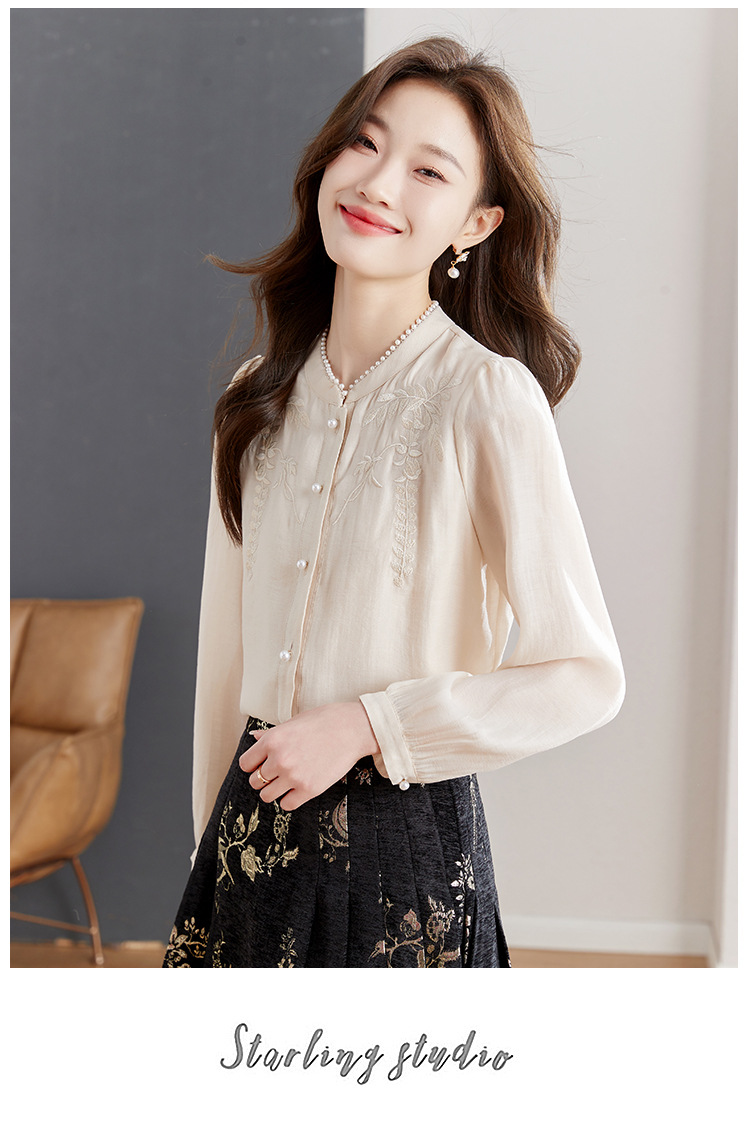 패션 새로운 중국 긴팔 쉬폰 셔츠 여자 봄 2024 봄 새로운 국가 스타일 자수 올 매치 셔츠 탑
