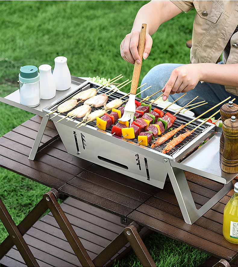 BBQ 그릴 가정용 바베큐 그릴 실내 야외 캠핑 숯 그릴 스테인레스 스틸 휴대용 접이식 바베큐 랙스토어 가기