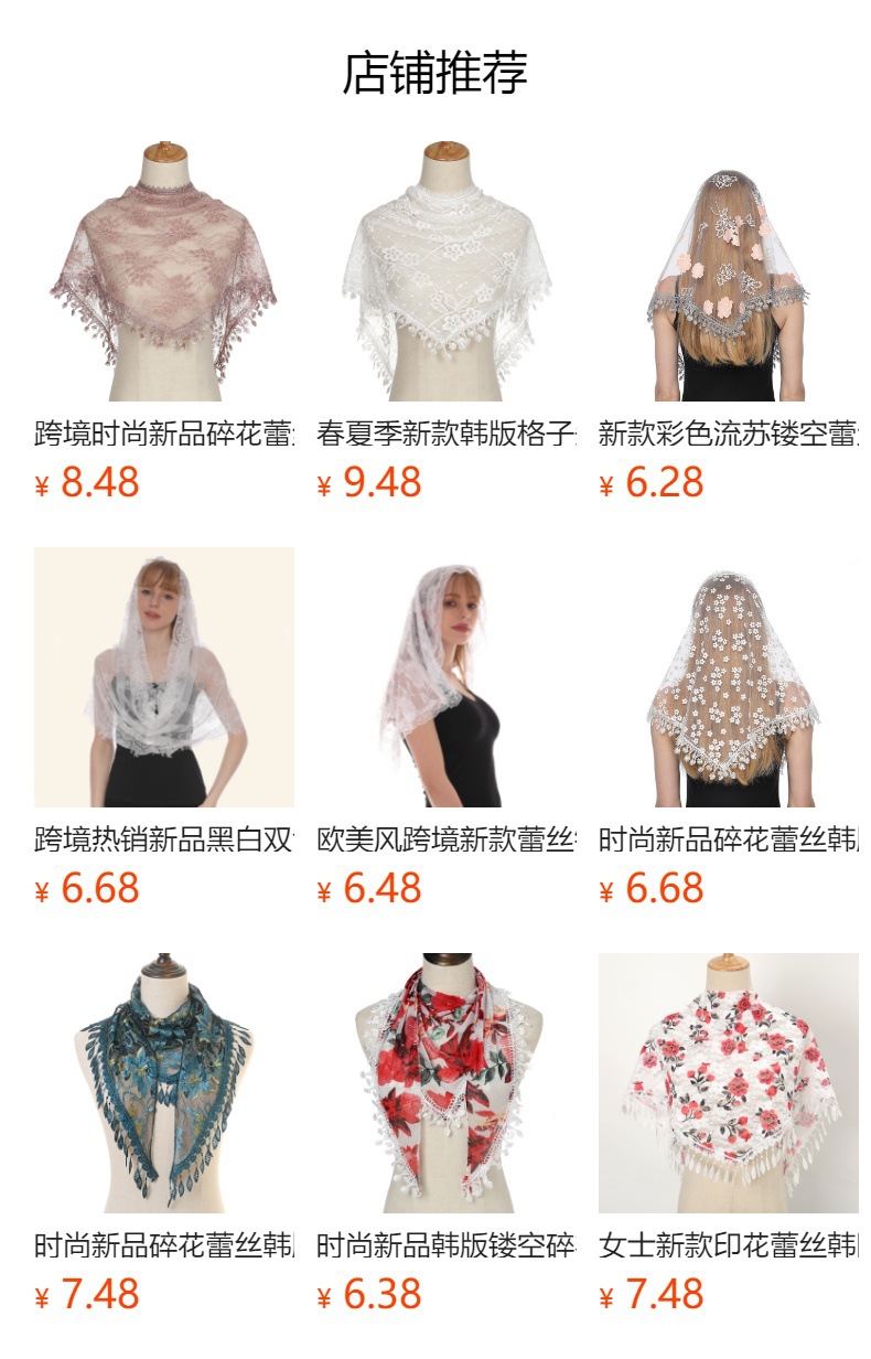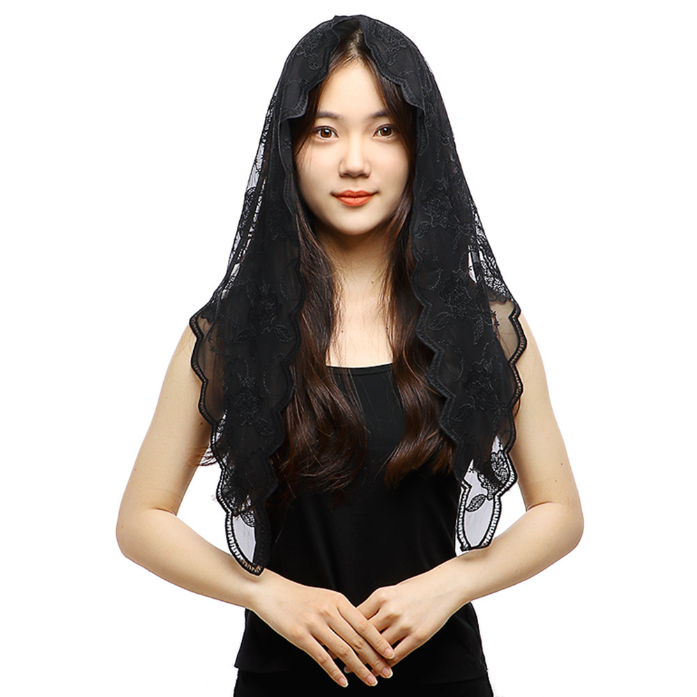 봄과 여름 새로운 숙녀 속이 빈 레이스 삼각형 한국 흑백 단색 장미 클래식 통기성 베일스토어 가기