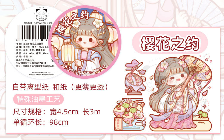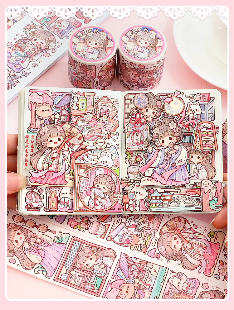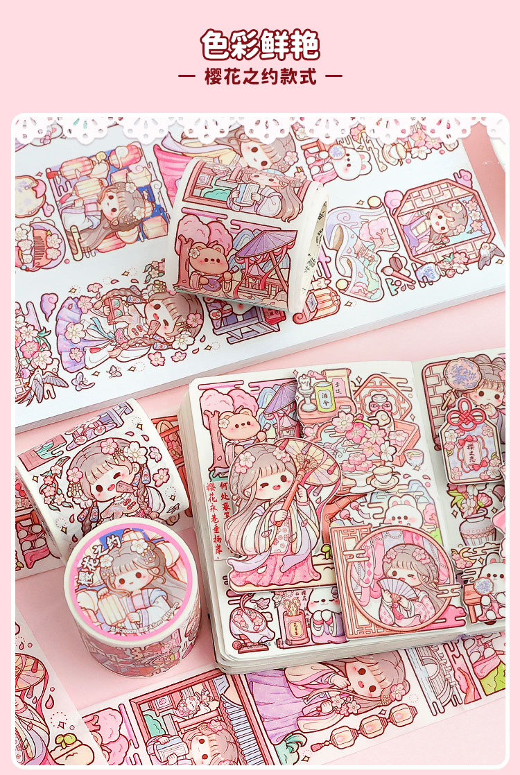 티라도 테이프 벚꽃 신제품 테이프 귀여운 소녀의 심장 손 계정 테이프 전체 롤 전체 세트 및 종이 테이프스토어 가기