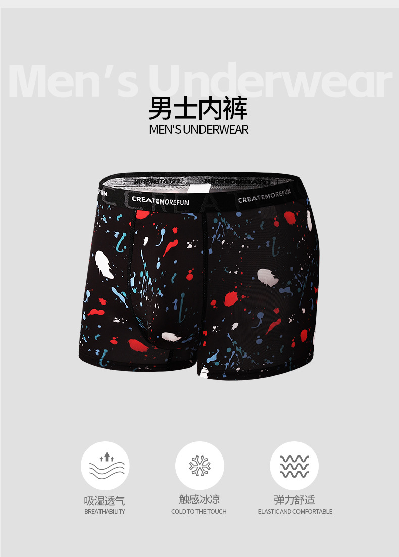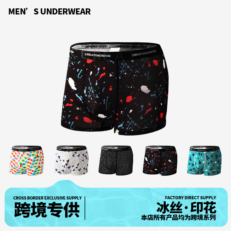 국경 간 남성 속옷 여름 얼음 실크 통기성 중간 허리 인쇄 네 모서리 복서 제조 업체 도매 대외 무역 속옷스토어 가기
