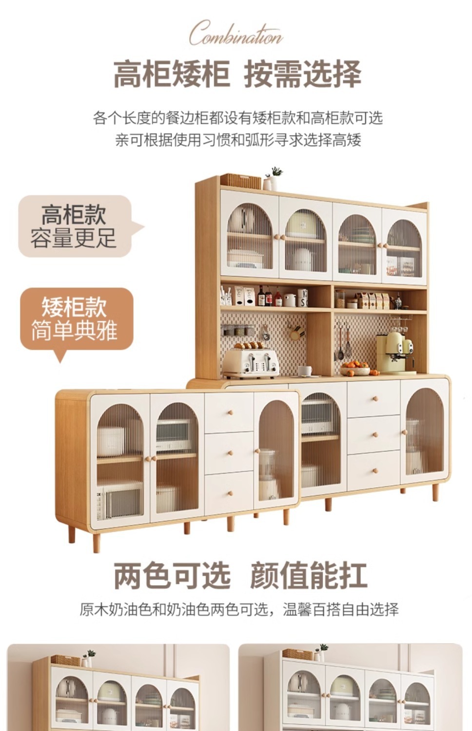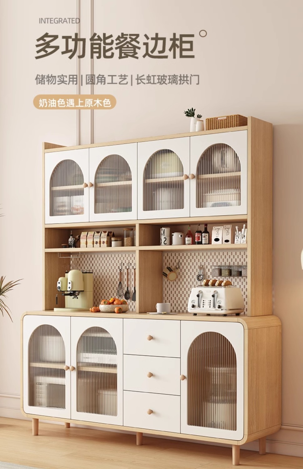크림 스타일 하이 사이드 보드 벽 통합 가정용 주방 거실 와인 캐비닛 현대 간단한 빛 럭셔리 스토리지 랙