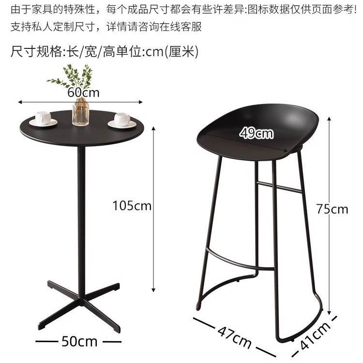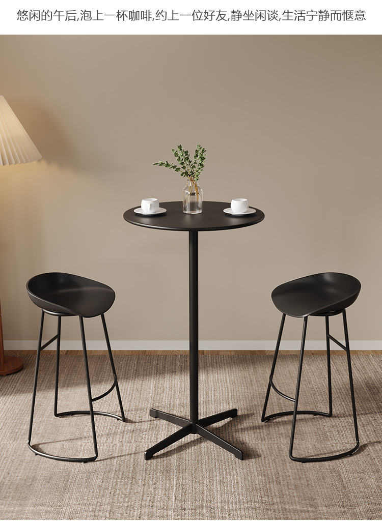 현대적이고 심플한 원형 높은 바 테이블과 의자 세트, 가정용 및 상업용 야외 발코니 레저용 금속 바 테이블 세트스토어 가기
