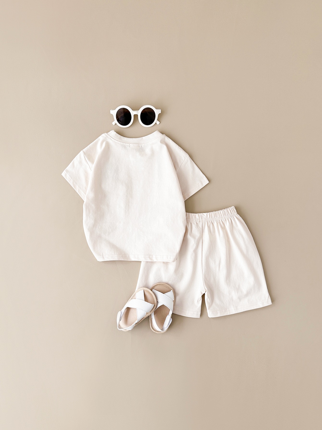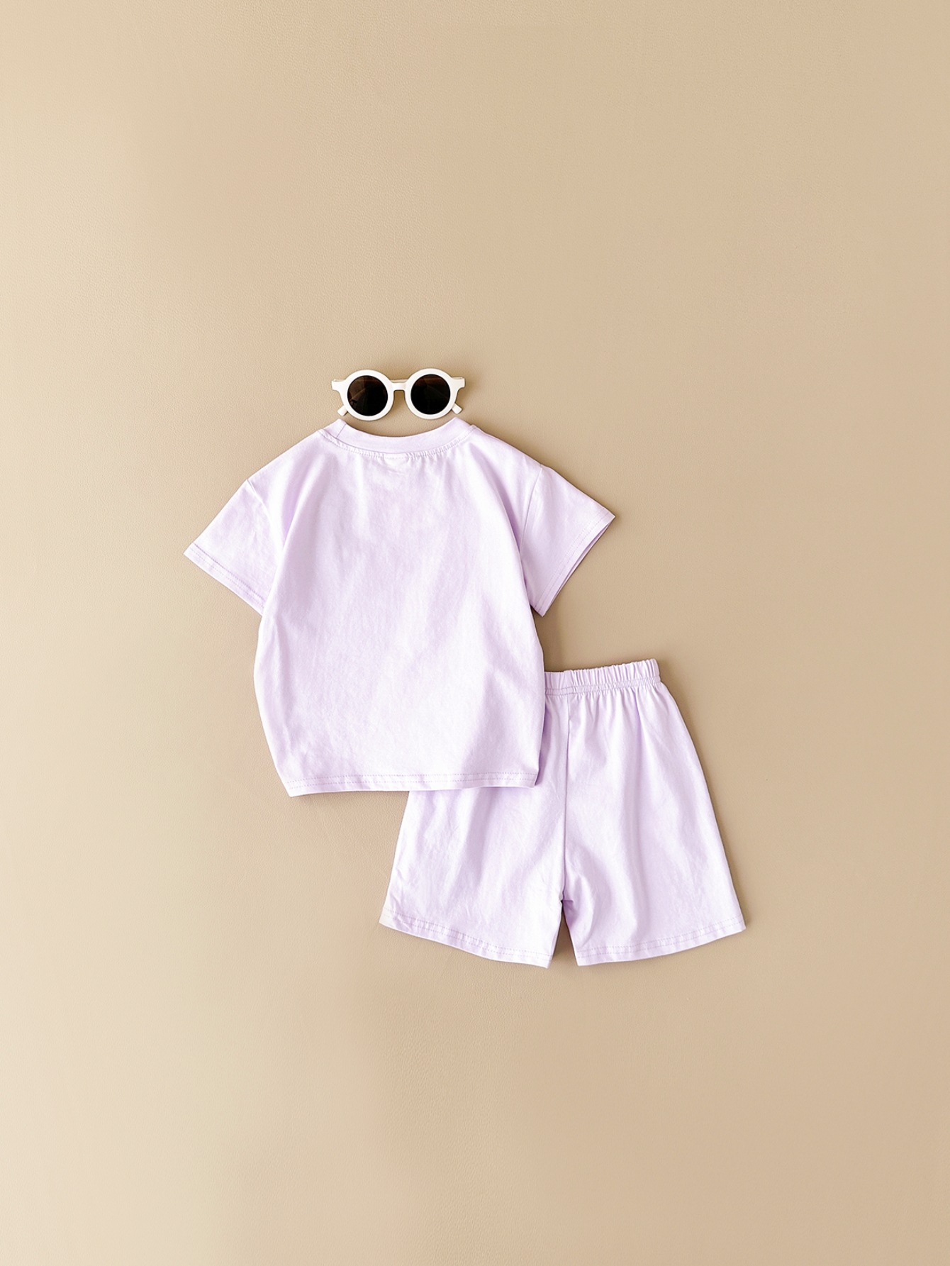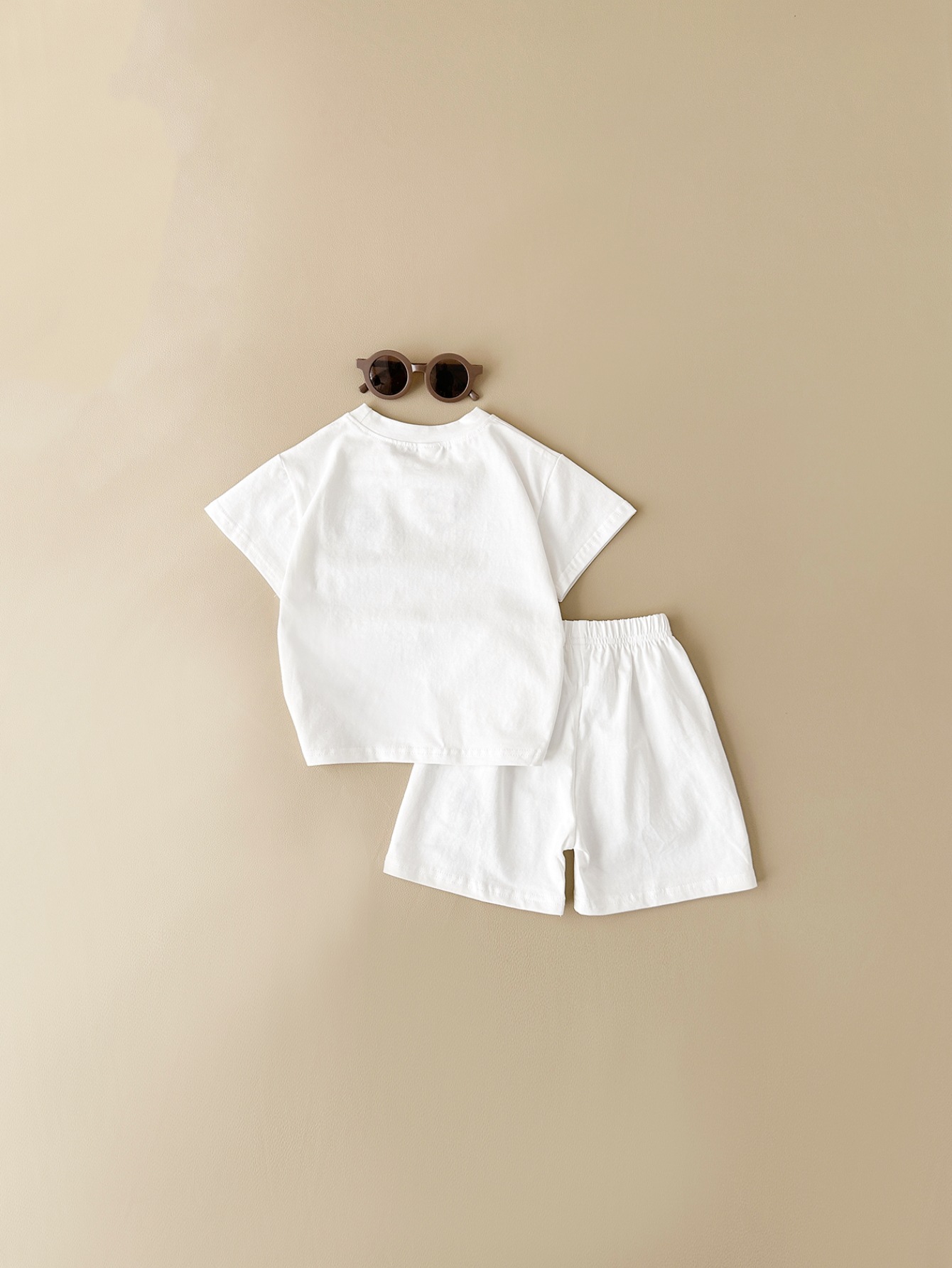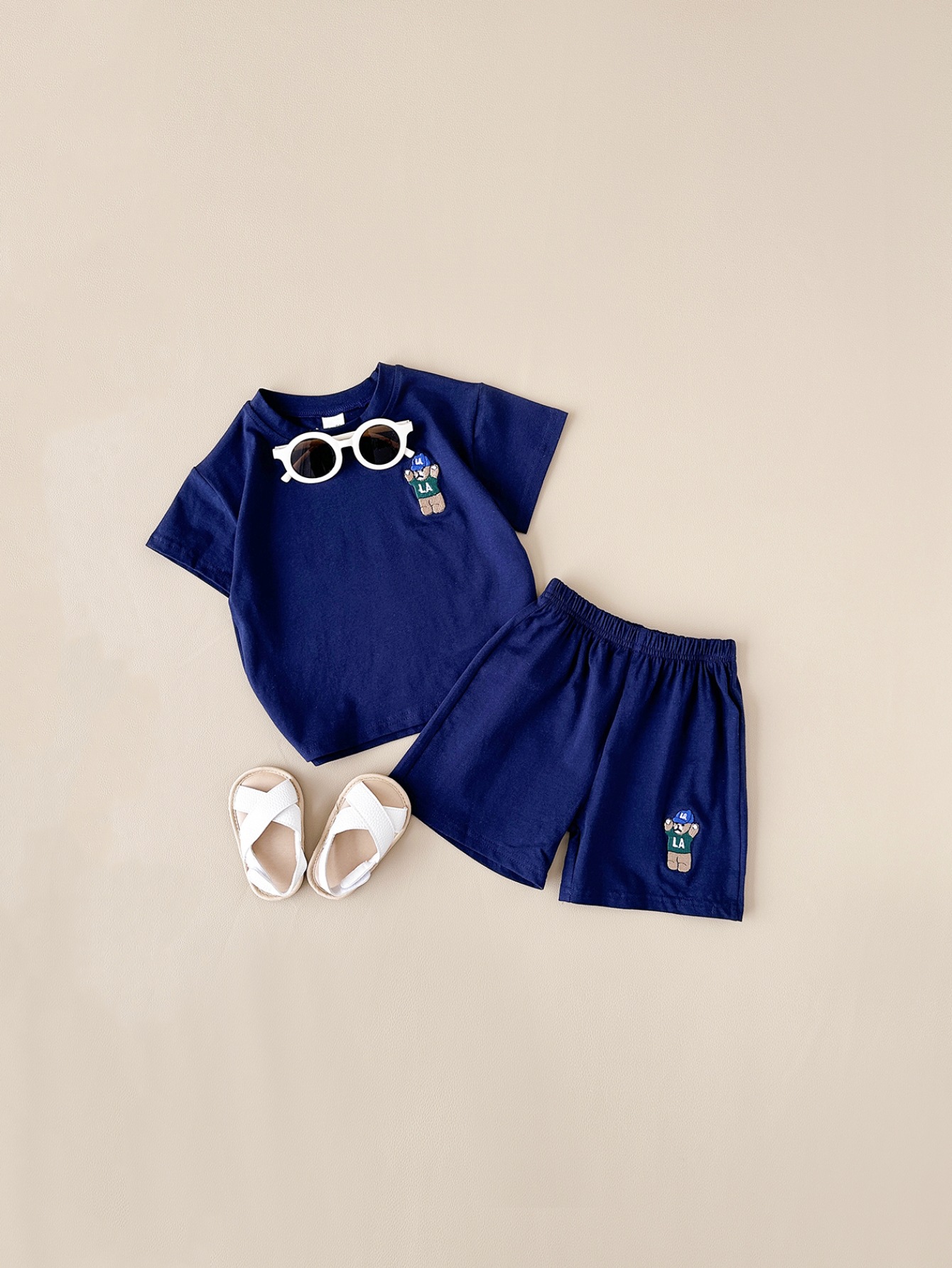 여름 어린이 귀여운 곰 수 놓은 반팔 세트 한국 남녀 아기 의류 투피스 국경 대외 무역