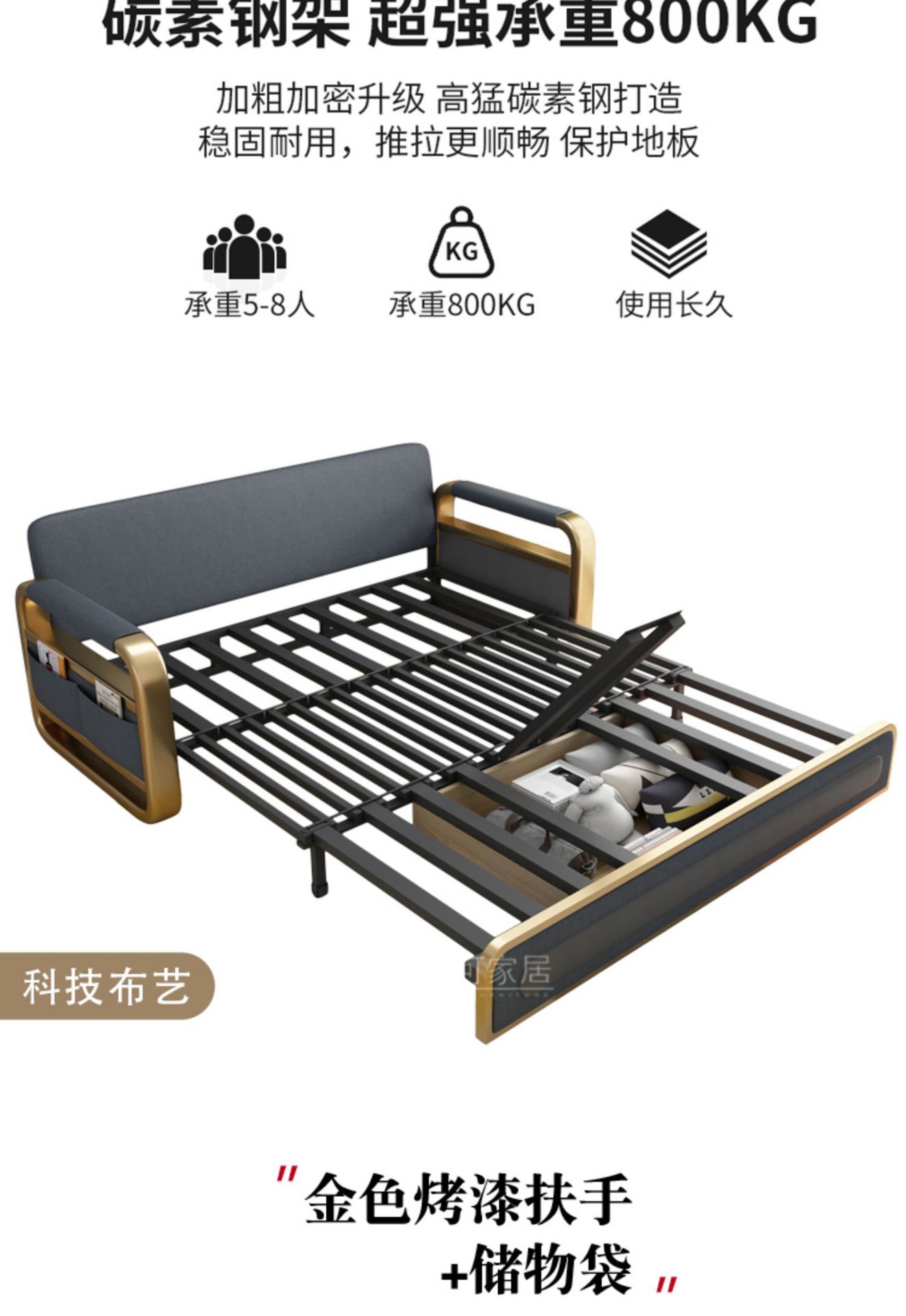 과학 기술 천 소파 베드 이중 목적 현대적인 간단한 싱글 및 더블 거실 작은 아파트 다기능 스토리지 스토리지 접이식