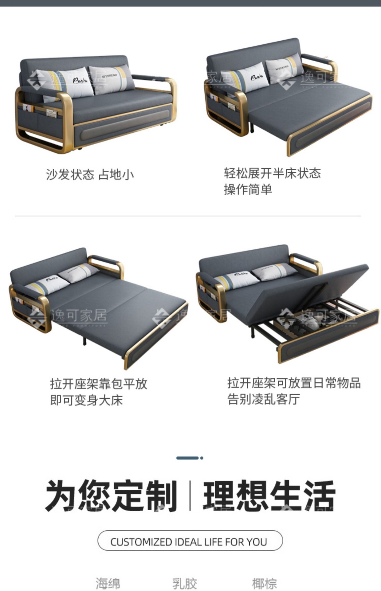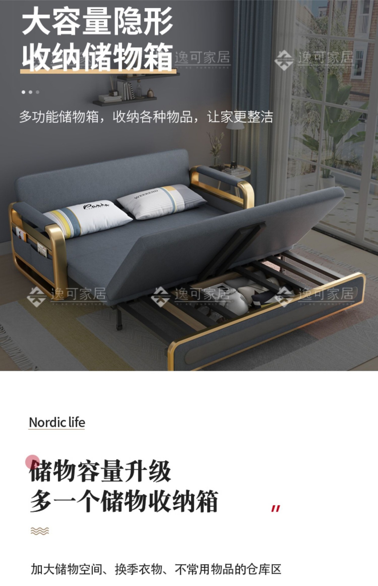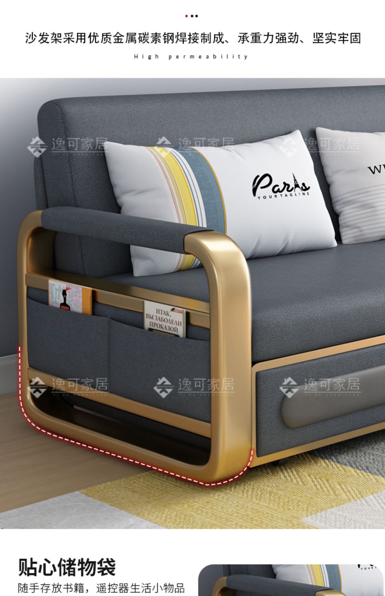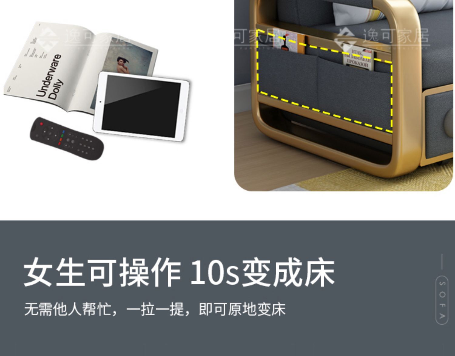 과학 기술 천 소파 베드 이중 목적 현대적인 간단한 싱글 및 더블 거실 작은 아파트 다기능 스토리지 스토리지 접이식스토어 가기