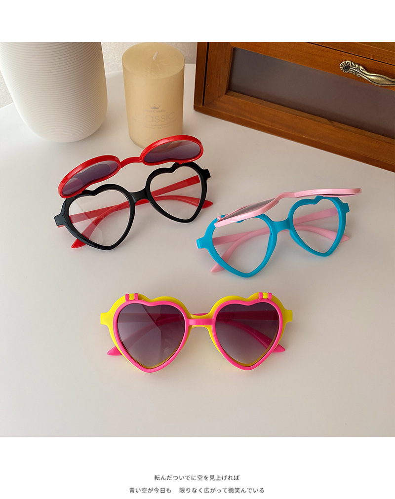 아기 귀여운 패션 선글라스 소년과 소녀 장난감 안경 플립 재미 선글라스 사랑 안경 프레임 액세서리스토어 가기