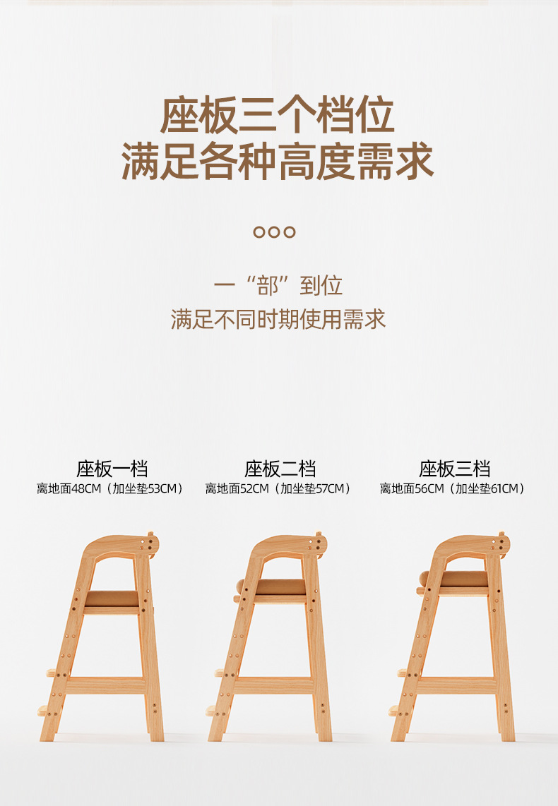 B & 어린이 식사 의자 나무 큰 아기 홈 높은 의자 단단한 나무 식사 의자 크게 들어 올리는 큰 어린이 성장 좌석스토어 가기