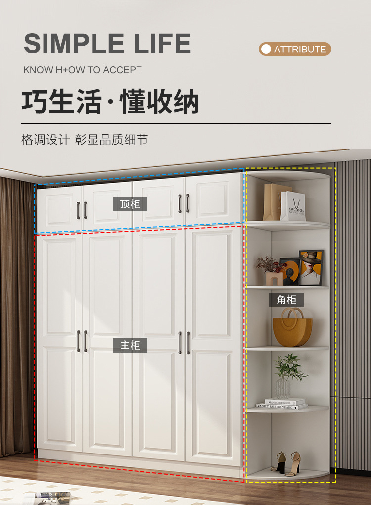 어린이 옷장, 가정용 침실, 간단한 조립 캐비닛, 임대실, 튼튼하고 내구성이 뛰어나며 경제적인 조합 작은 옷장