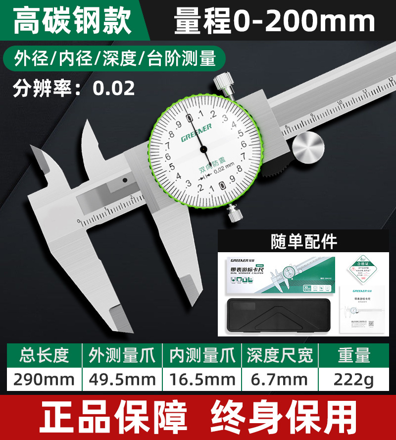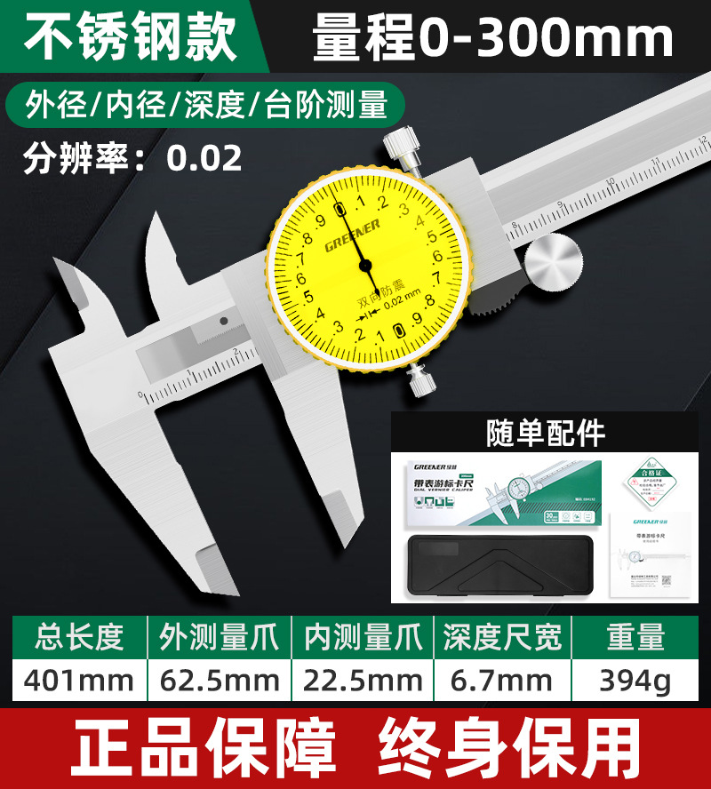 버니어 캘리퍼 산업을 대신하여 테이블 캘리퍼가있는 그린 포레스트 0-150-200-300mm 다이얼 고정밀 스테인레스 스틸스토어 가기