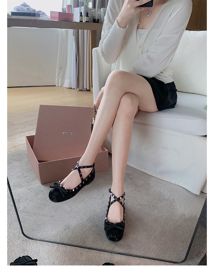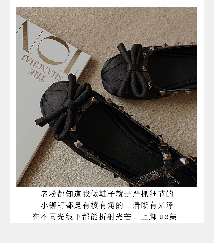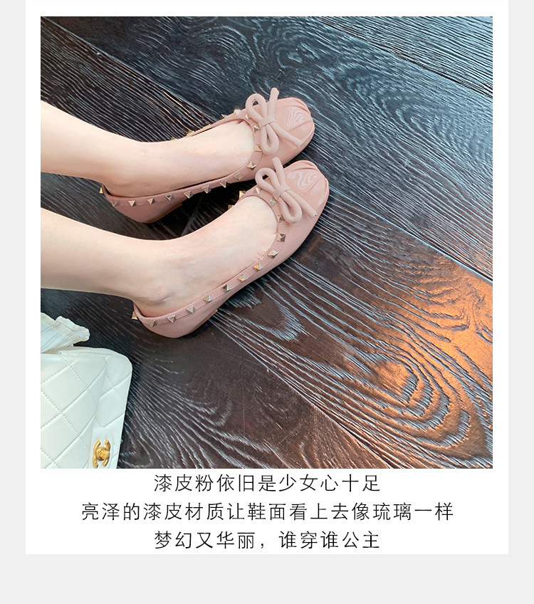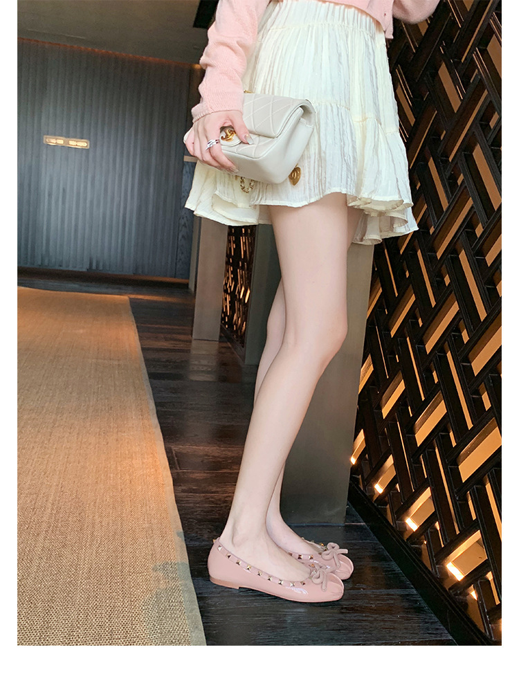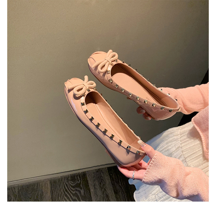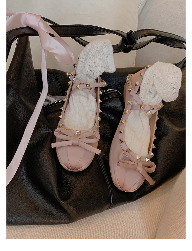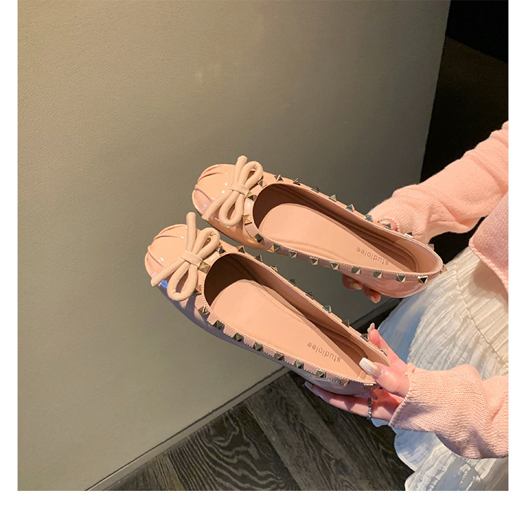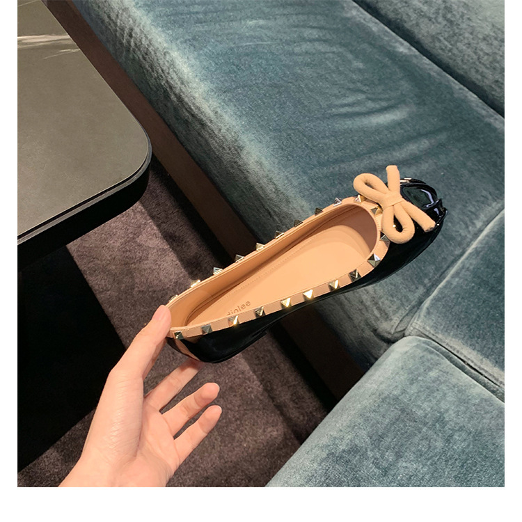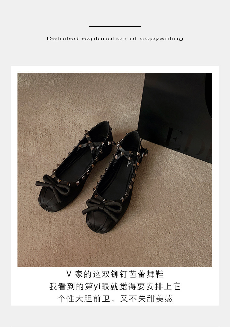 포도 엄마 Cowhide Valentino 스터드 싱글 레이어 신발 여성용 얕은 입 콘트라스트 활 플랫 발레 슈즈