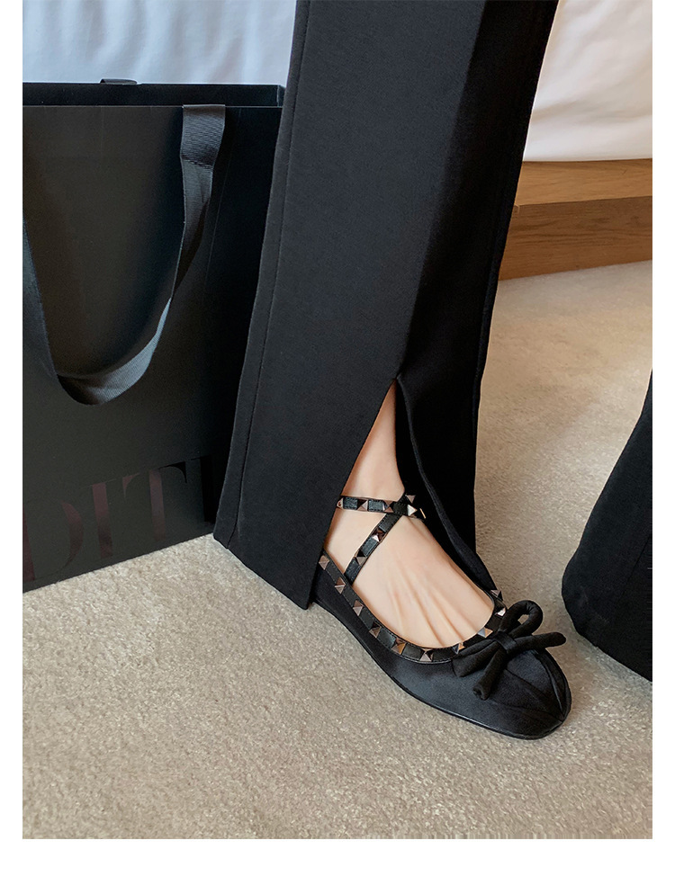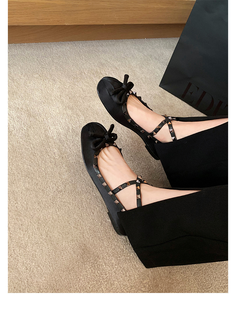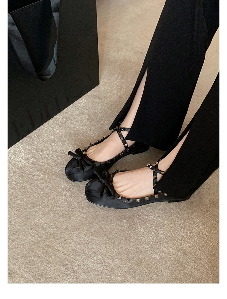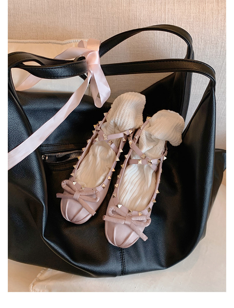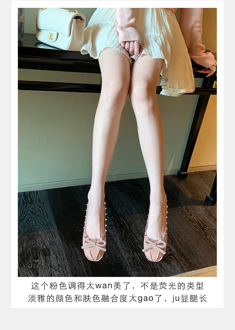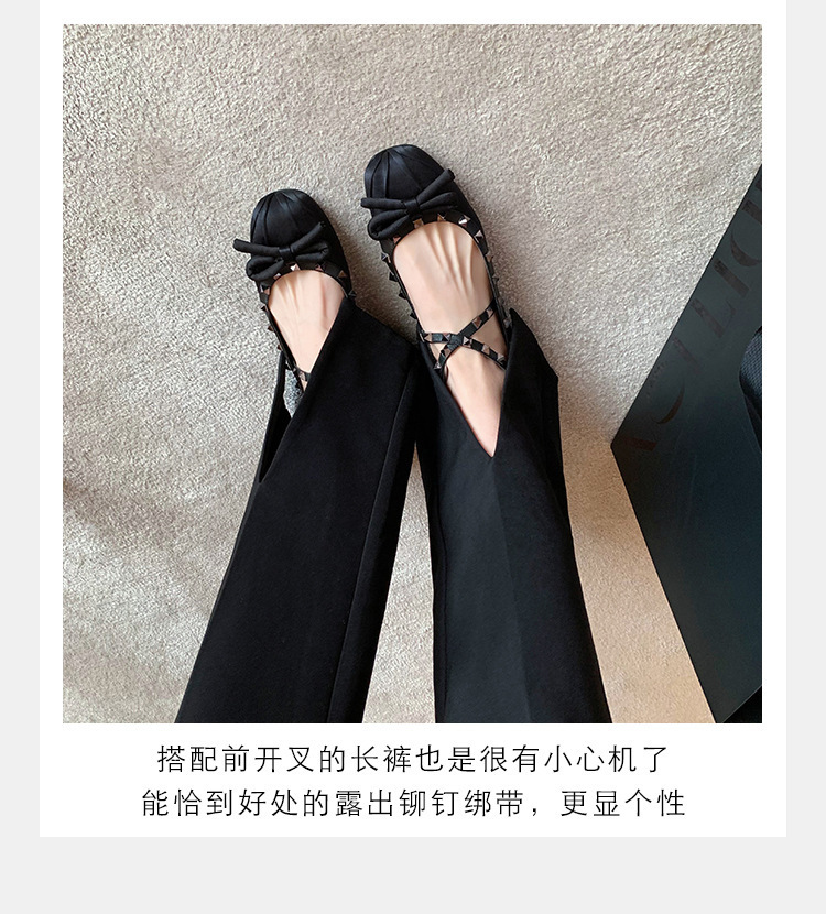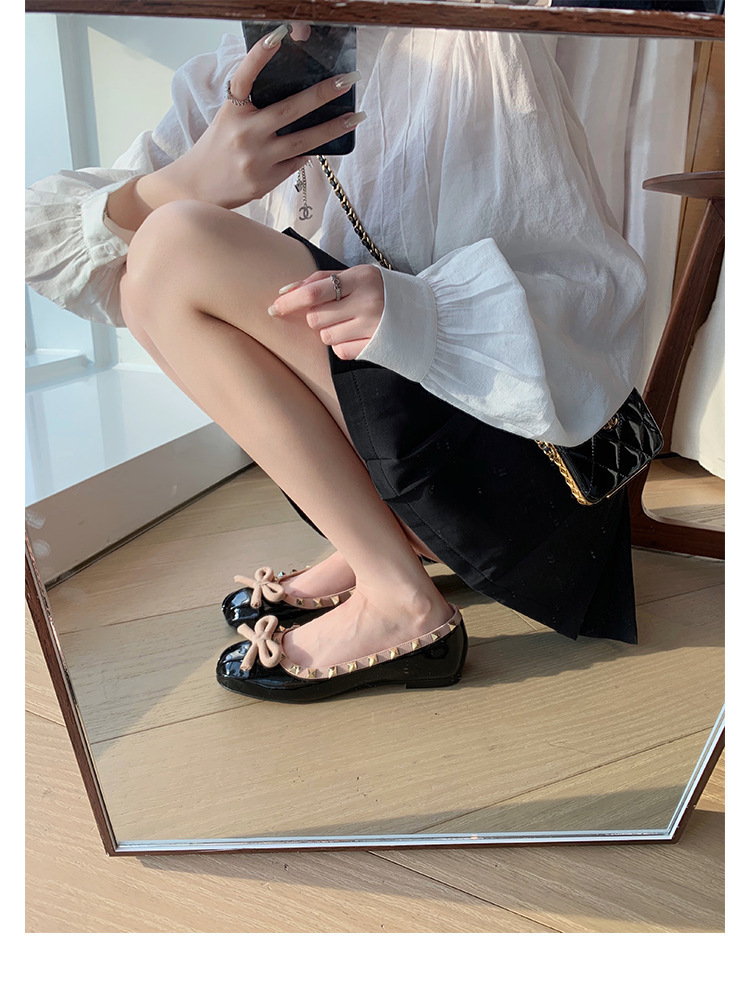 포도 엄마 Cowhide Valentino 스터드 싱글 레이어 신발 여성용 얕은 입 콘트라스트 활 플랫 발레 슈즈