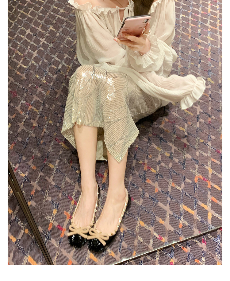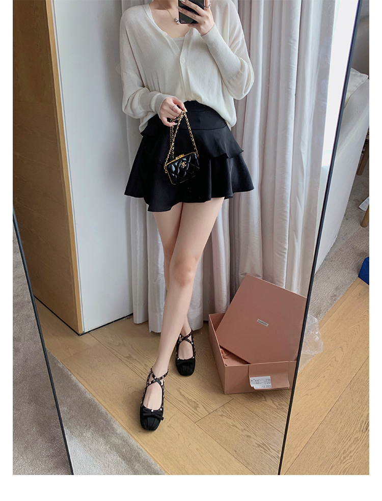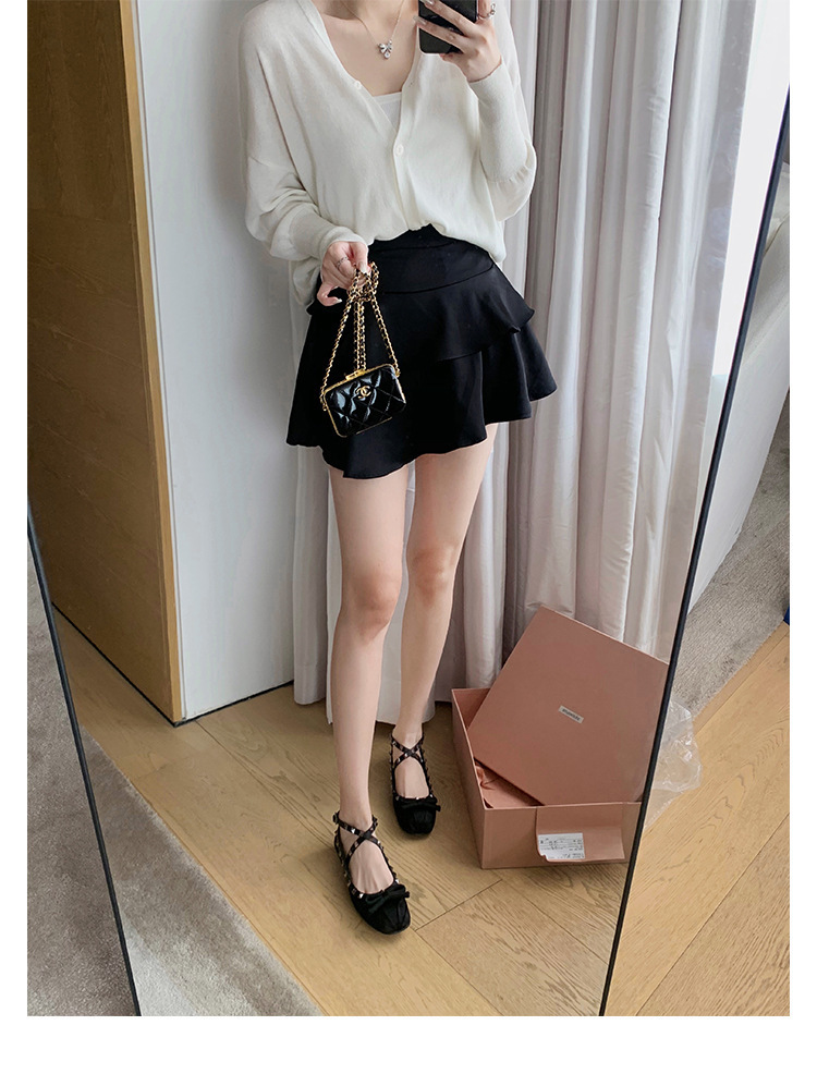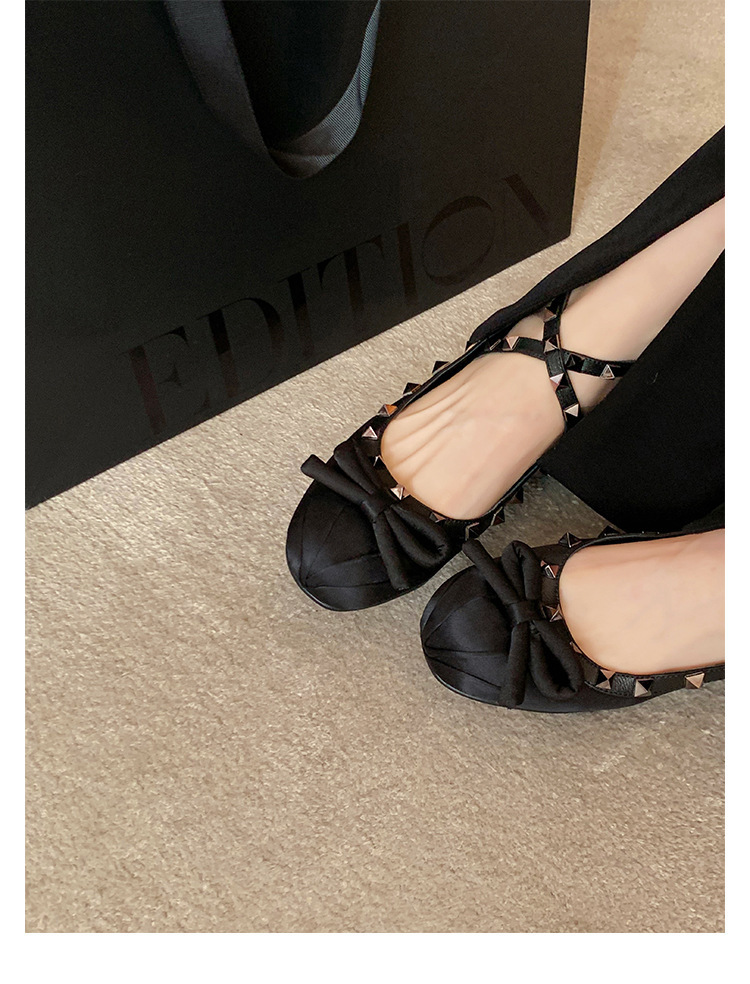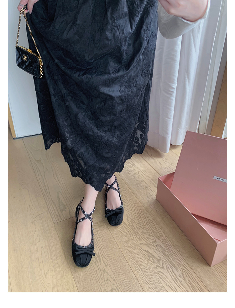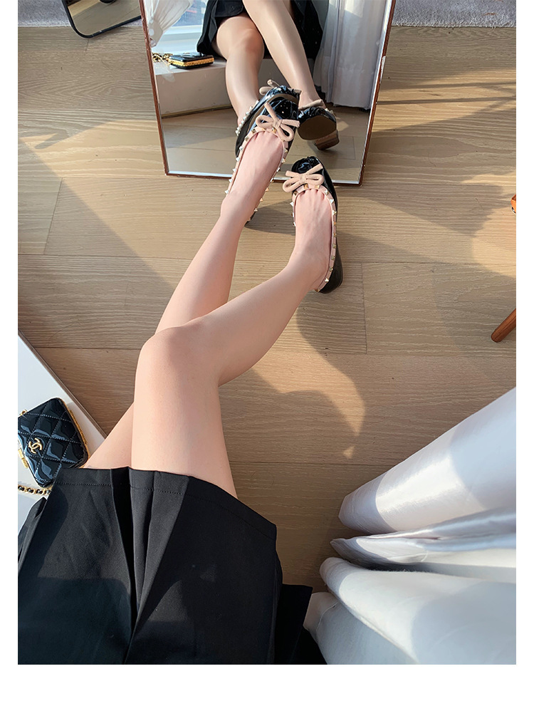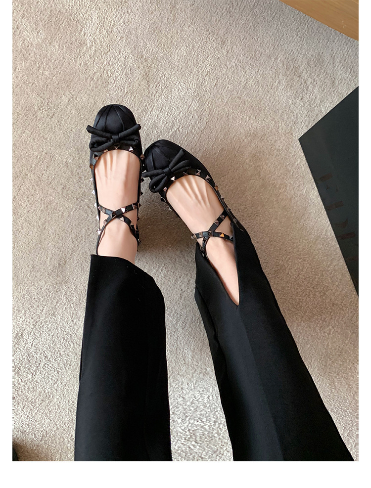 포도 엄마 Cowhide Valentino 스터드 싱글 레이어 신발 여성용 얕은 입 콘트라스트 활 플랫 발레 슈즈