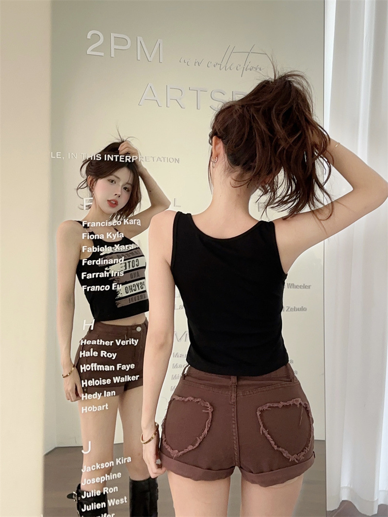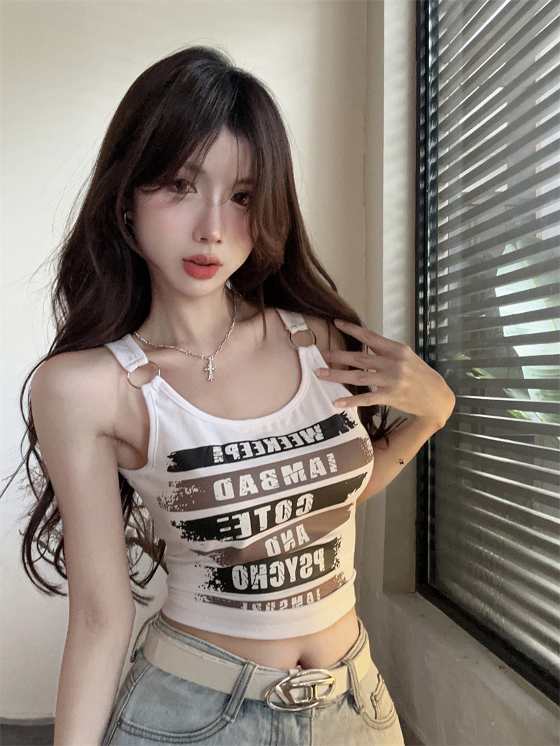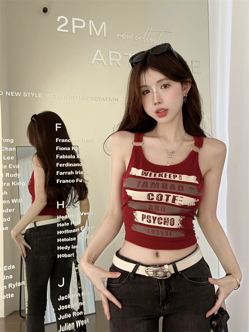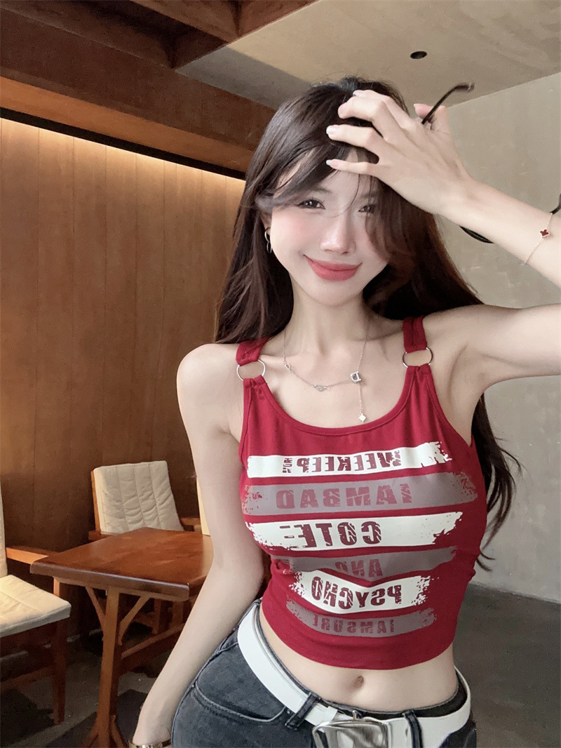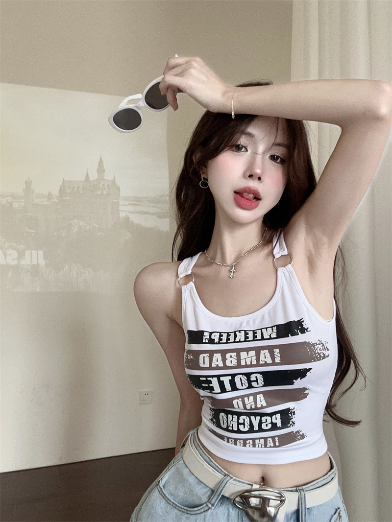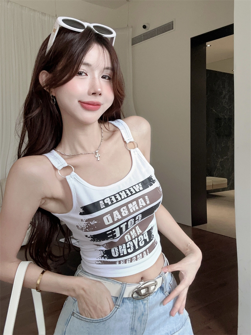 새로운 반지 편지 인쇄 카미솔 아름다운 뒤 내부 가슴 패드 포장 가슴 짧은 슬림 핏 외부 착용 스파이스 소녀 탑스토어 가기