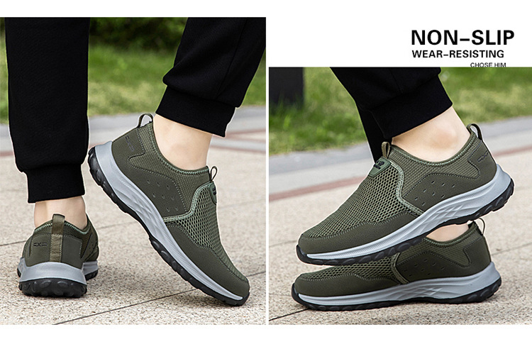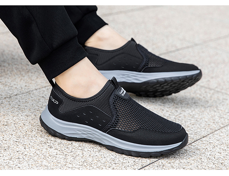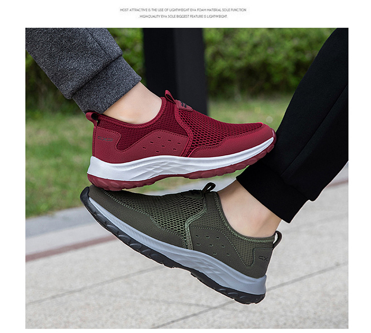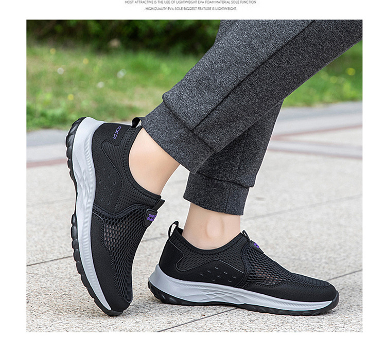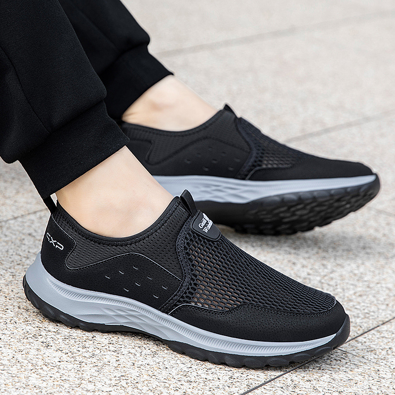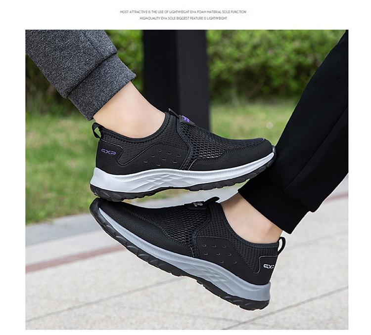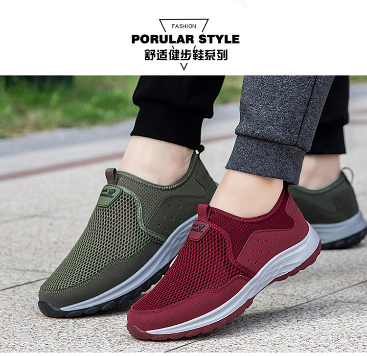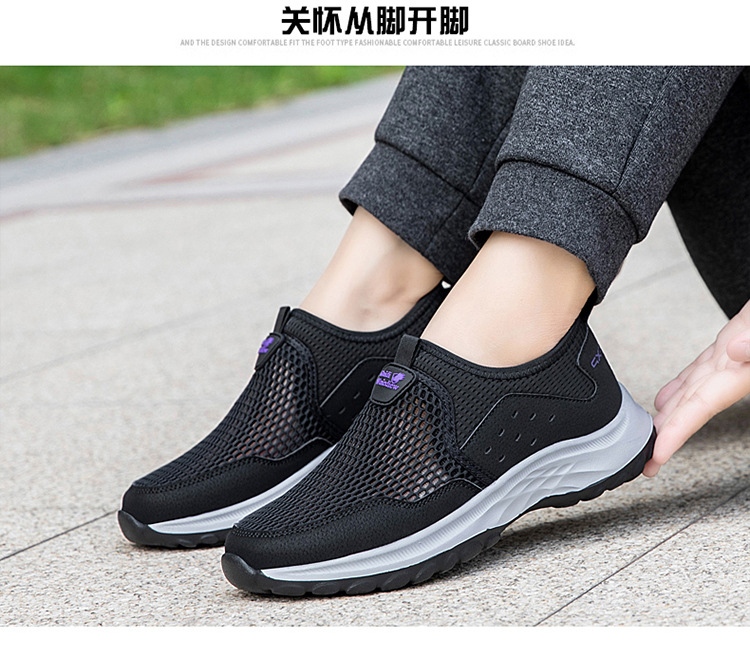 여름 대형 메쉬 할로우 워킹 신발 통기성 노인 신발 슬립 온 야외 스포츠 캐주얼 신발