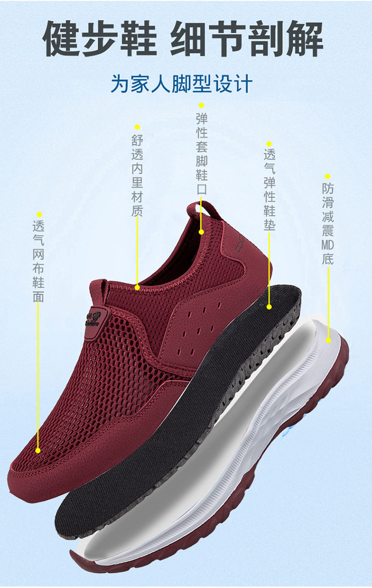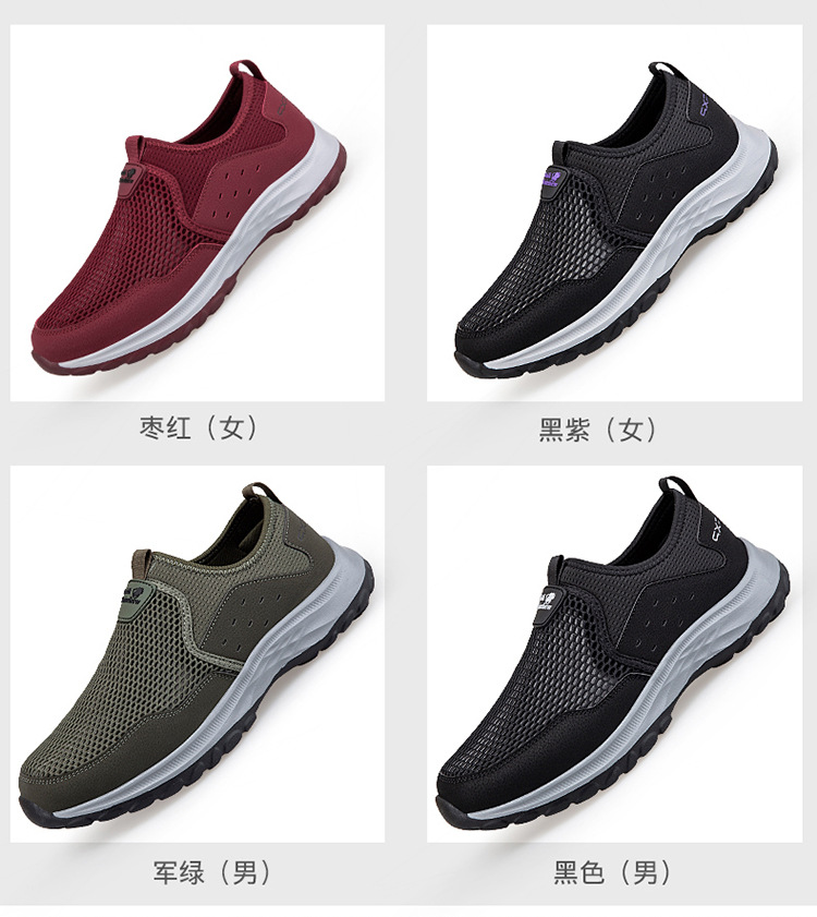 여름 대형 메쉬 할로우 워킹 신발 통기성 노인 신발 슬립 온 야외 스포츠 캐주얼 신발스토어 가기