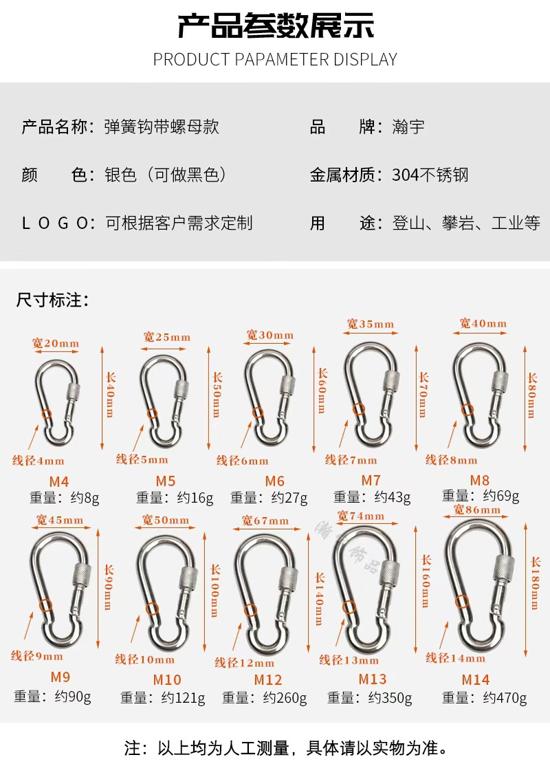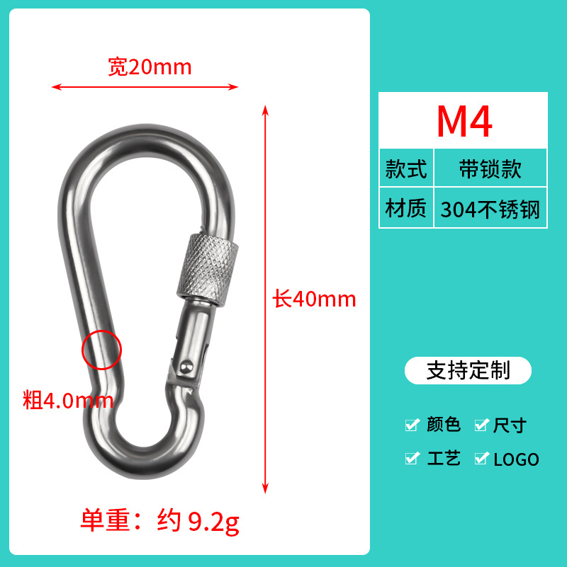 304 스테인레스 스틸 잠금 스프링 버클 조롱박 유형 안전 안전 버클 로프 체인 연결 스프링 후크 카라비너스토어 가기