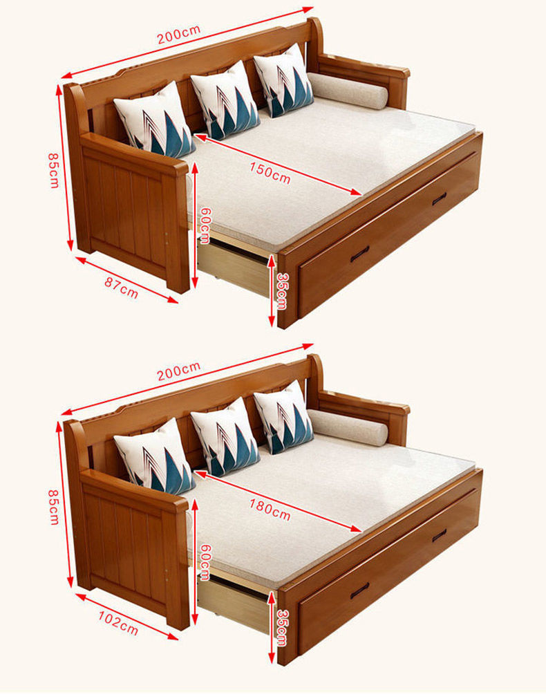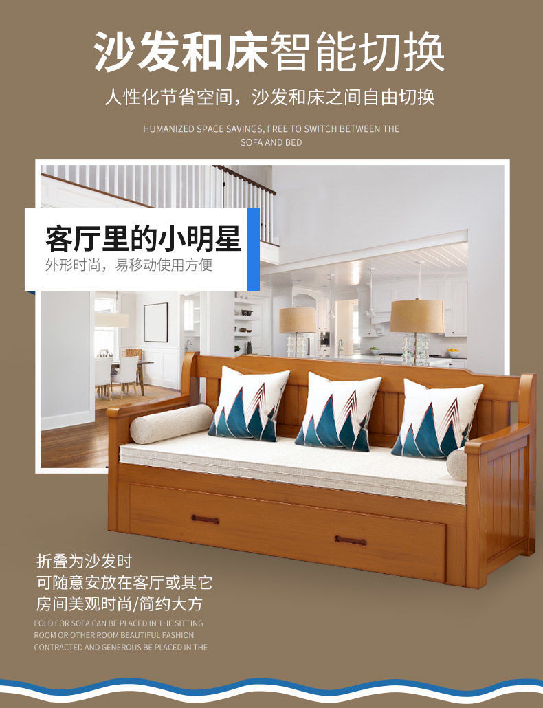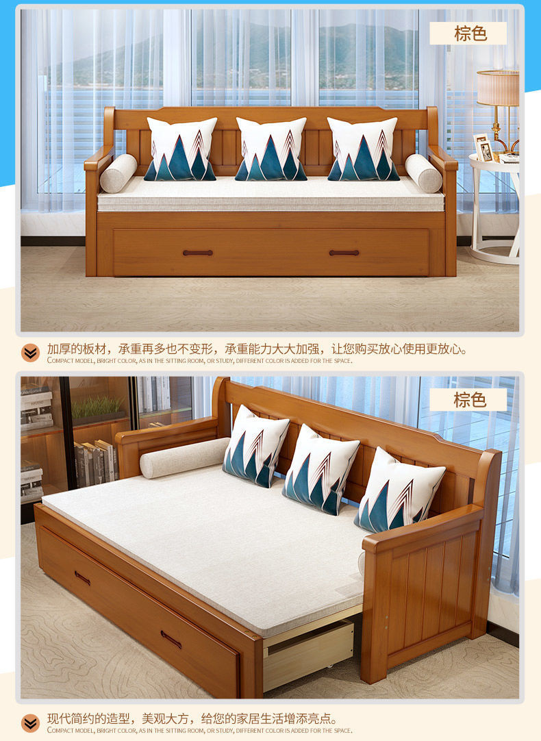 솔리드 우드 소파 침대 이중 목적 침대 소형 아파트 더블 1.5 m 앉아 및 슬리핑 푸시 풀 거실 정리 다기능 소파 침대