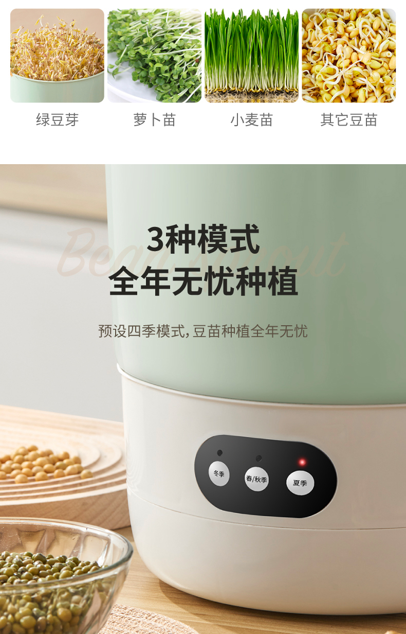 콩 콩나물 기계 자동 가정용 지능형 콩나물 기계 대용량 발아 기계 수제 작은 녹두 새싹 묘목 관개 냄비스토어 가기