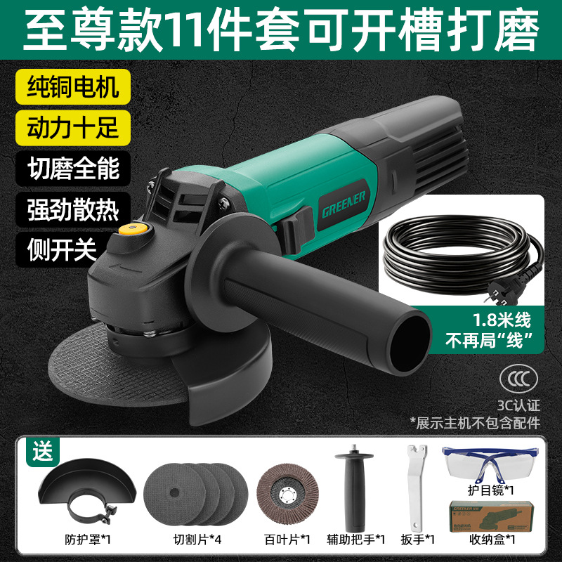 그린 우드 앵글 그라인더 정품 가정용 핸드 그라인더 전기 도매 도구 다기능 절단 기계 연마 기계스토어 가기