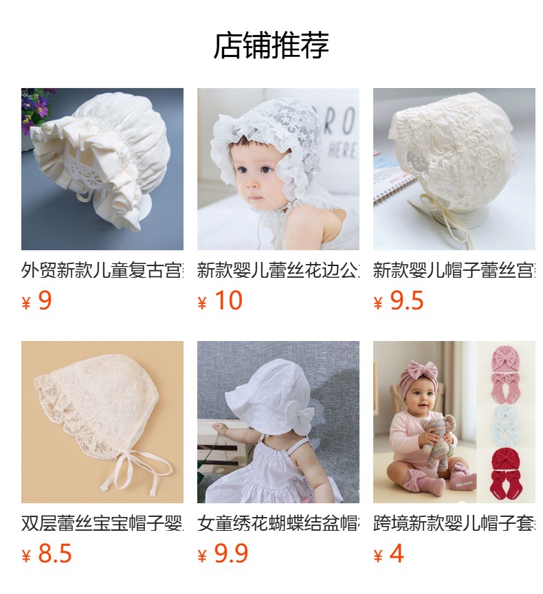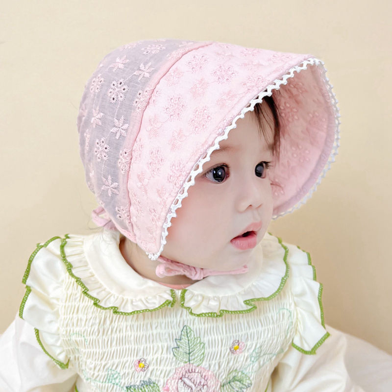 纯棉婴幼儿大檐遮阳帽女童公主帽宝宝夏季太阳帽外贸款婴儿宫廷帽