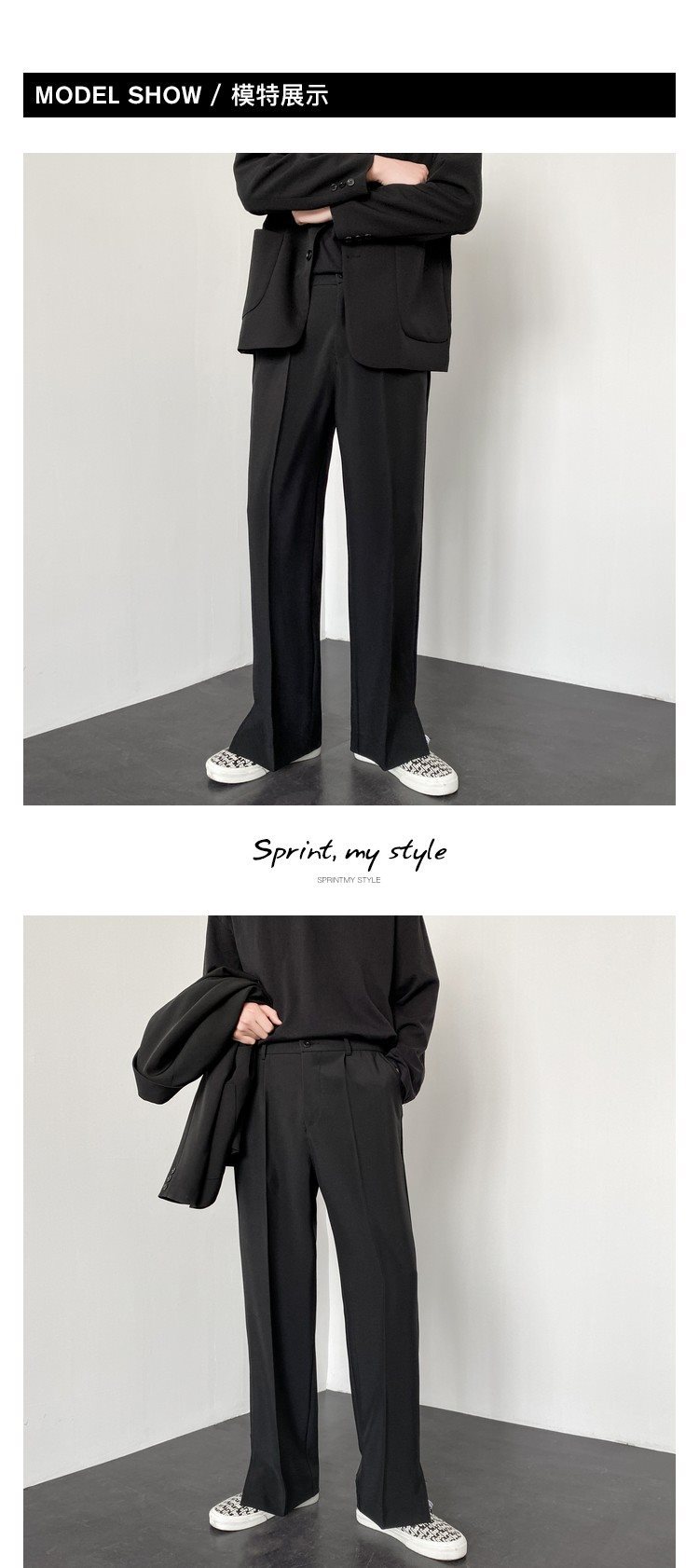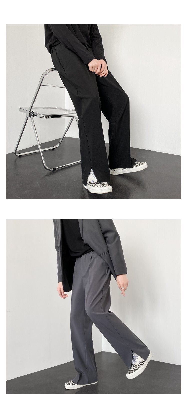 여름 스트레이트 루즈 캐주얼 바지 남성용 센스 스플릿 작은 바지, 캐주얼 세트 바지스토어 가기