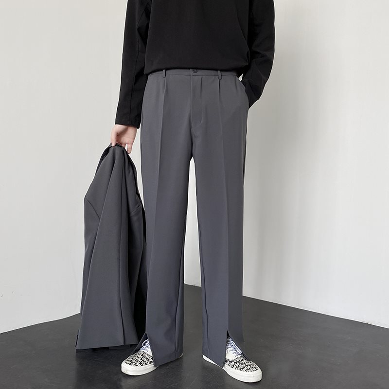 여름 스트레이트 루즈 캐주얼 바지 남성용 센스 스플릿 작은 바지, 캐주얼 세트 바지