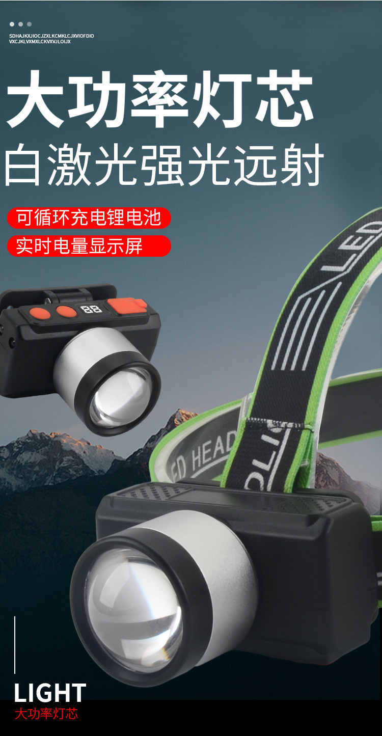 새로운 흰색 레이저 헤드 라이트 led 야외 경량 하이킹 조명 다기능 강한 빛 머리 장착 야간 낚시 조명