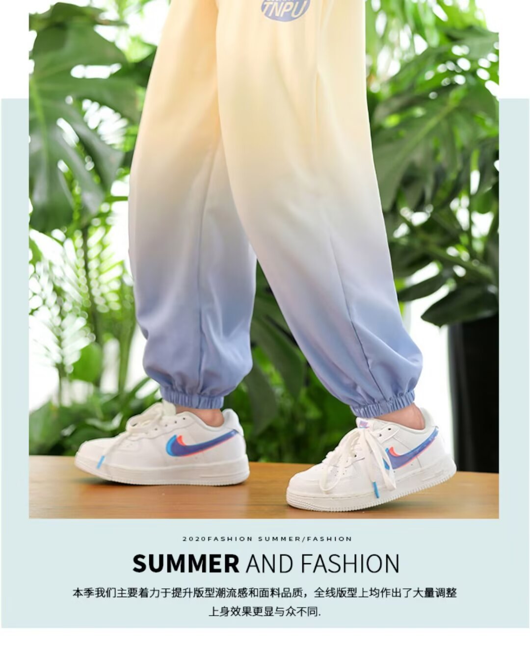 소년의 모기 방지 바지 어린이 아이스 실크 스포츠 바지 2024 여름 얇은 큰 어린이 여름 거리 댄스 바지 빠른 건조 트렌디
