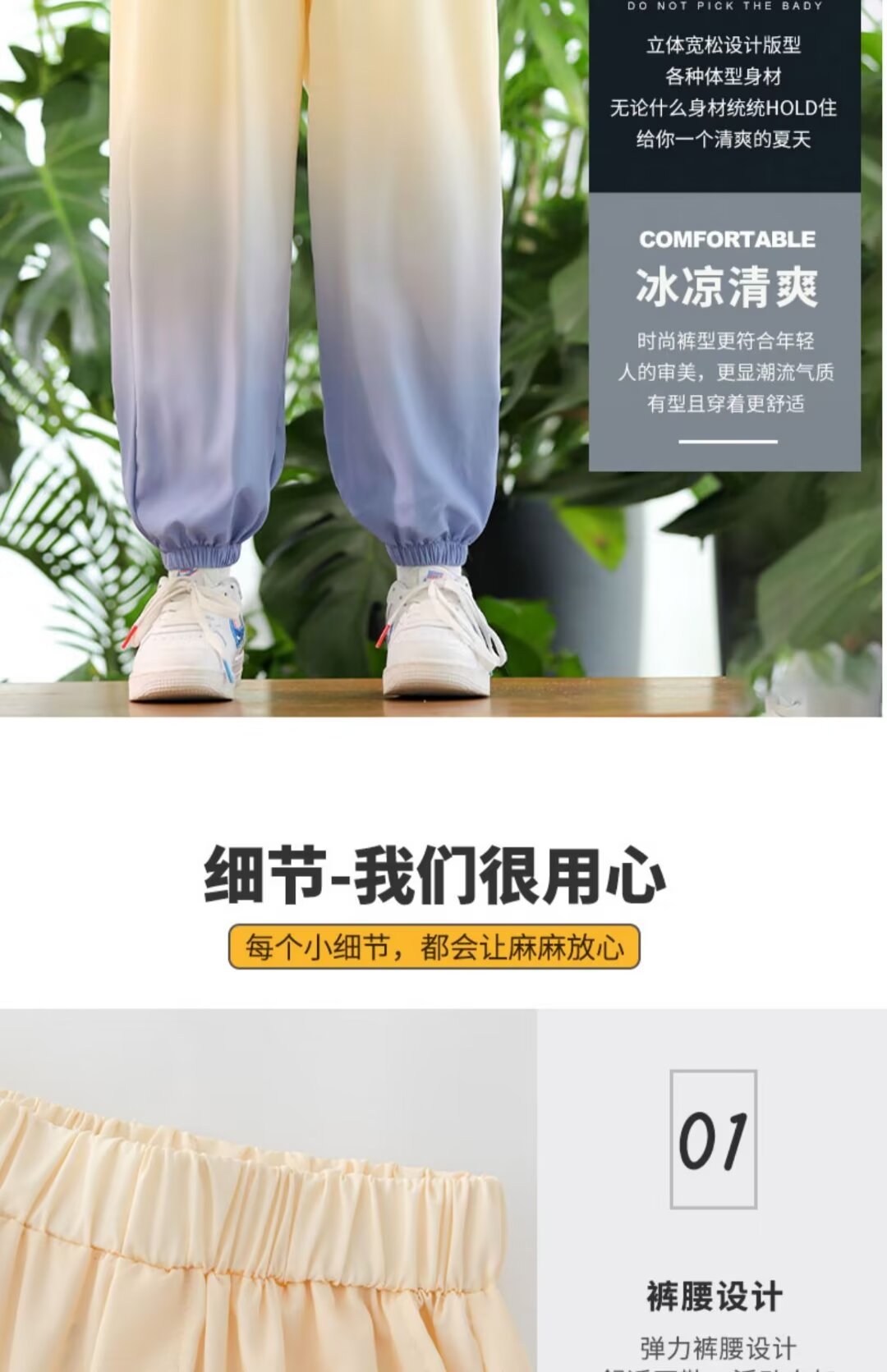 소년의 모기 방지 바지 어린이 아이스 실크 스포츠 바지 2024 여름 얇은 큰 어린이 여름 거리 댄스 바지 빠른 건조 트렌디스토어 가기