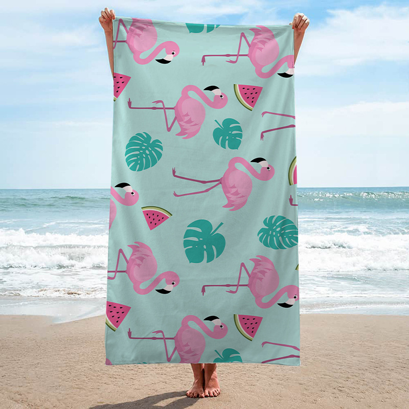 야외용 초극세사 흡수성 차양 목욕 타월 플라밍고 디지털 프린트 아마존 비치 타월 속건