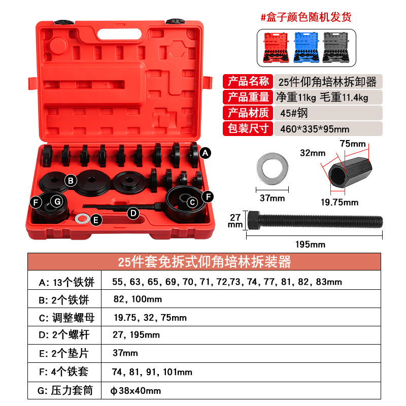 25 개의 베어링 분해 및 조립 도구 고도 Peilin은 자동차 전륜 베어링 풀아웃 추출기 프레스 베어링 부싱을 분해합니다.스토어 가기