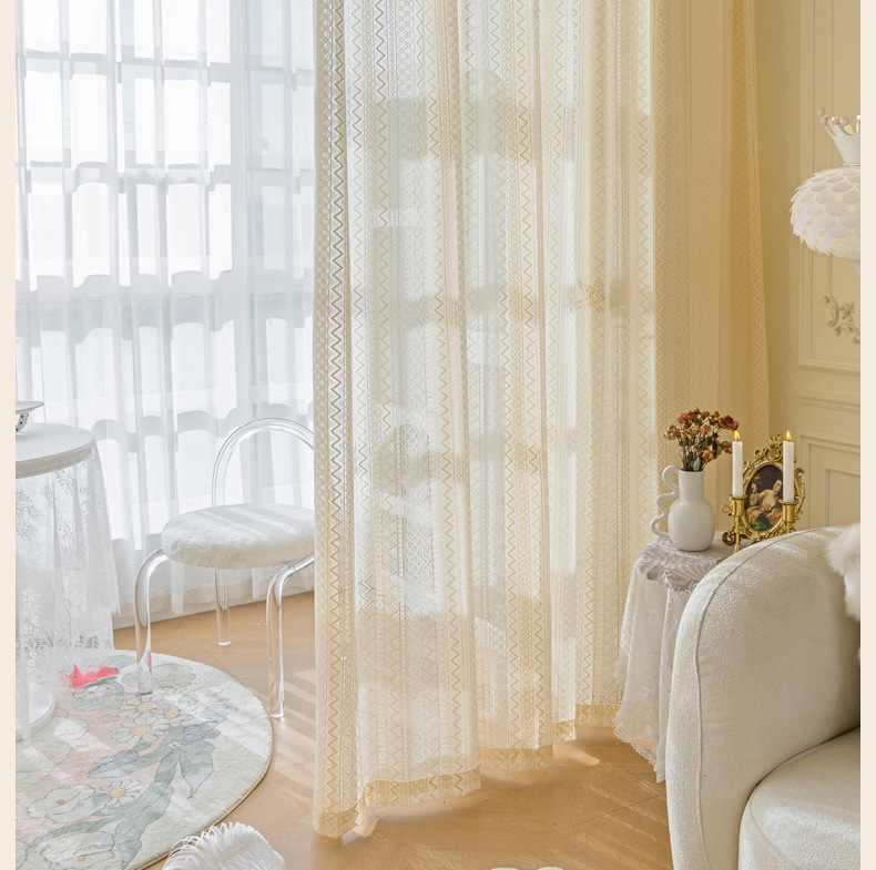 프렌치 레이스 거즈 커튼 거실 투명한 부러워하는 발코니 스크린 커튼 침실 베이 창 화이트 거즈 보헤미안 스타일