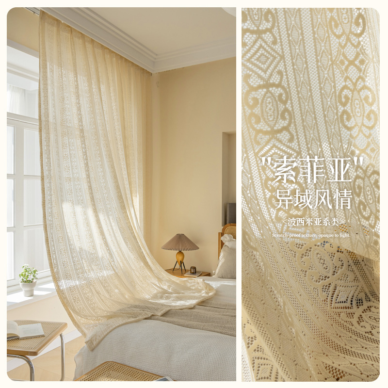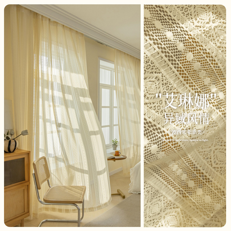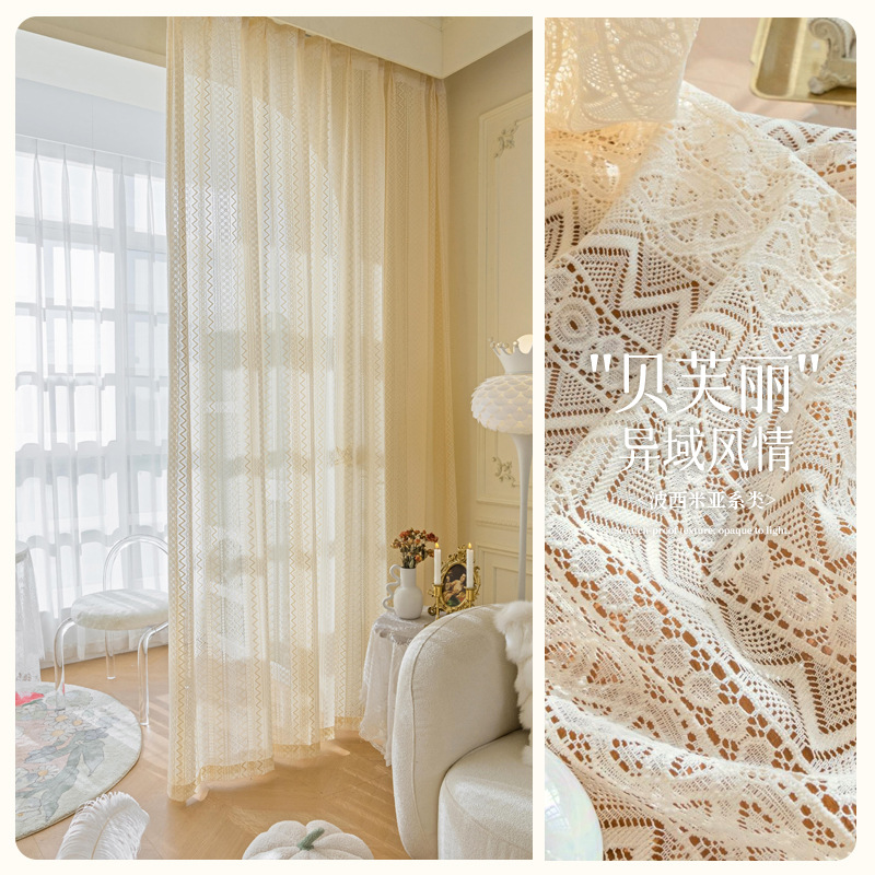 프렌치 레이스 거즈 커튼 거실 투명한 부러워하는 발코니 스크린 커튼 침실 베이 창 화이트 거즈 보헤미안 스타일스토어 가기