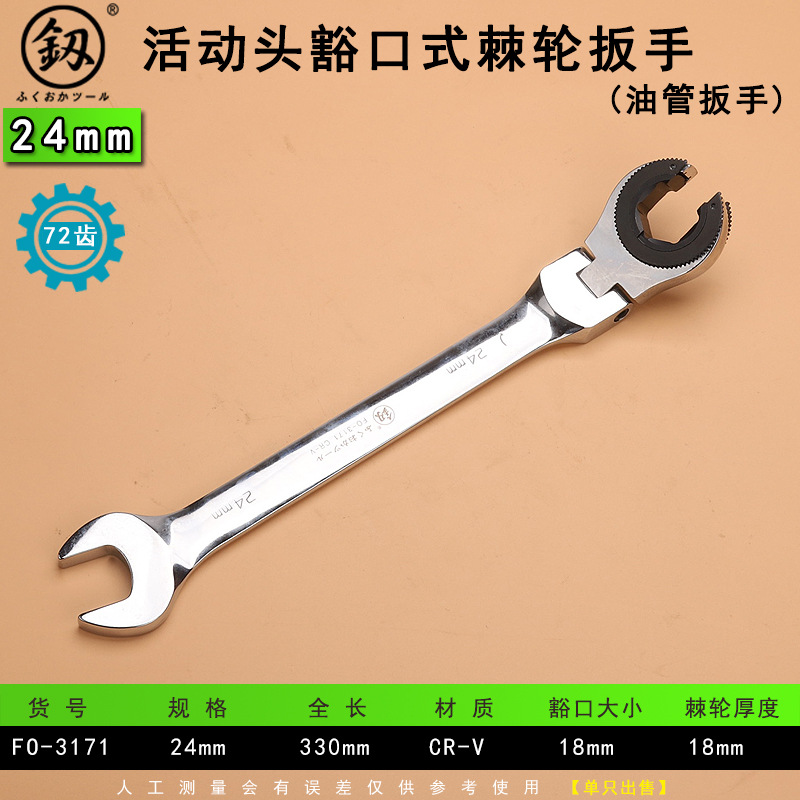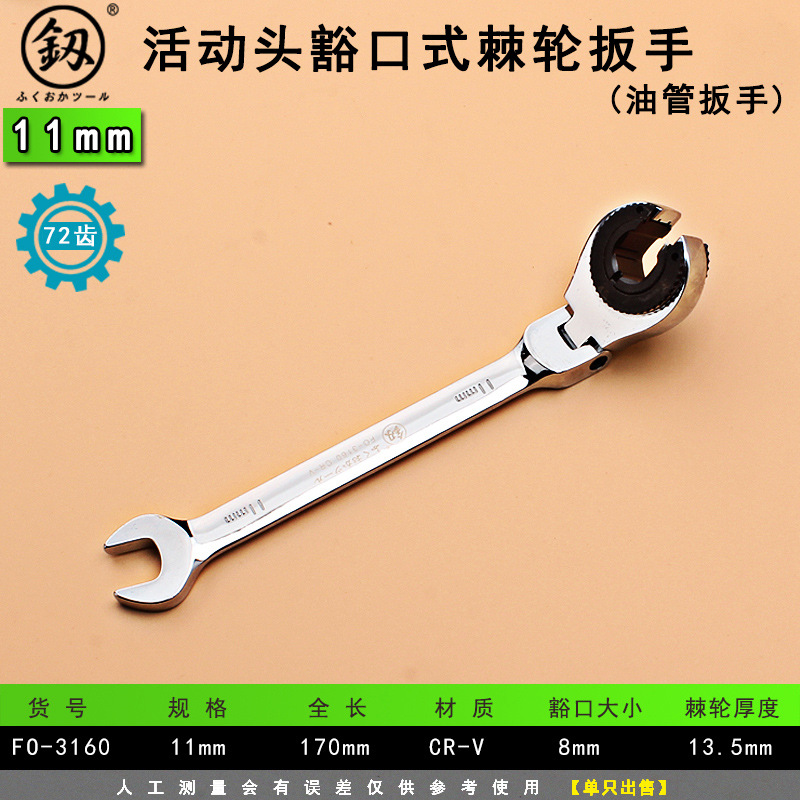 후쿠오카 공구 래칫 렌치 이중 목적 렌치 조정 가능한 헤드 오일 파이프 렌치 멀티 앵글 자동차 수리 보드 매뉴얼