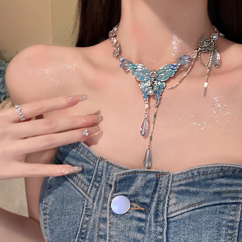 달콤한 시원한 상쾌한 빛 럭셔리 틈새 블루 크리스탈 나비 목걸이 달콤한 매운 성격 모든 매치 스파이스 소녀 술 쇄골 체인