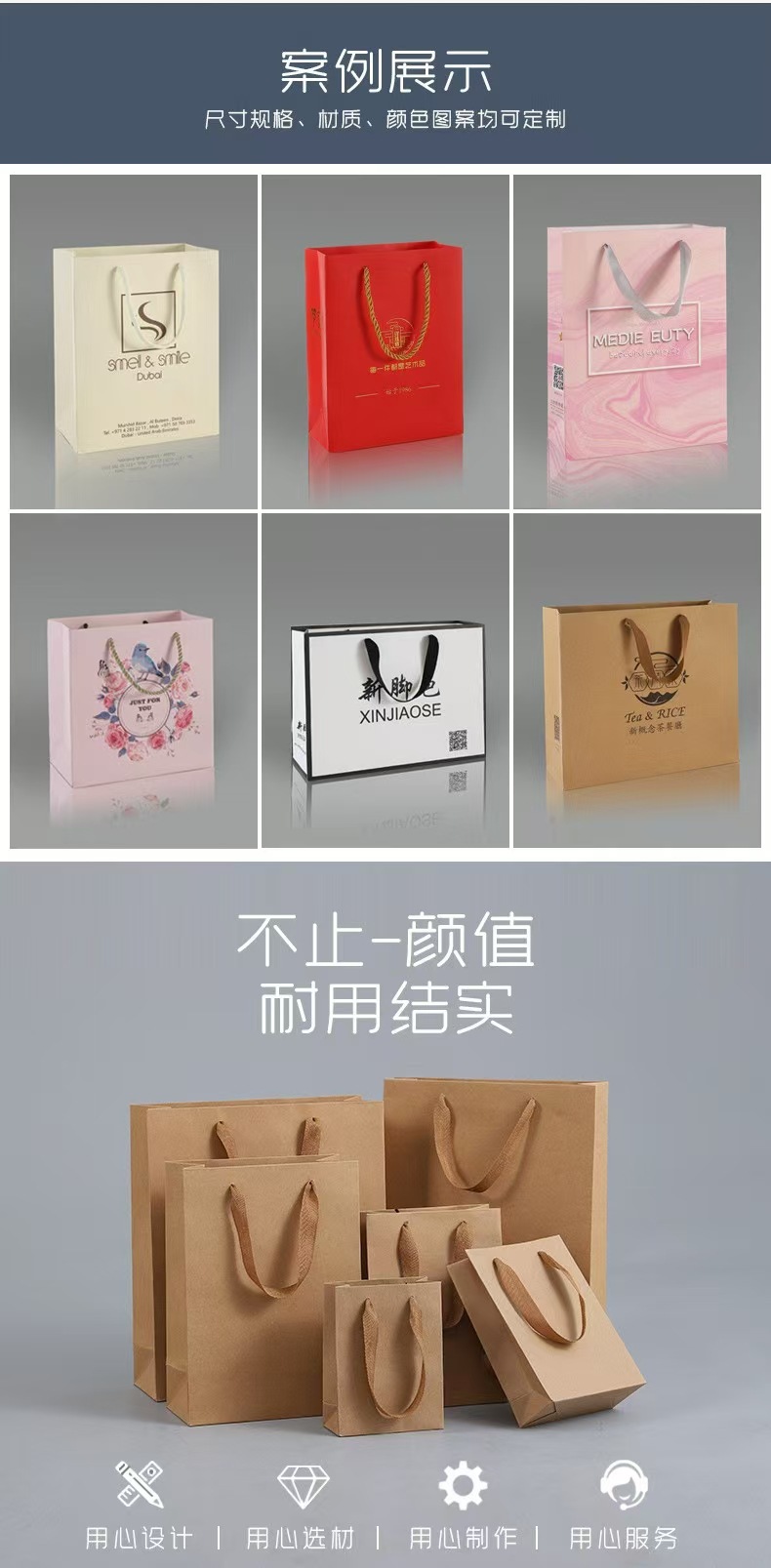 두꺼운 크라프트 종이 의류 쇼핑백, 차 선물 상자 종이봉투, 도매 쇼핑 선물 가방, 로고 인쇄 의류 가방