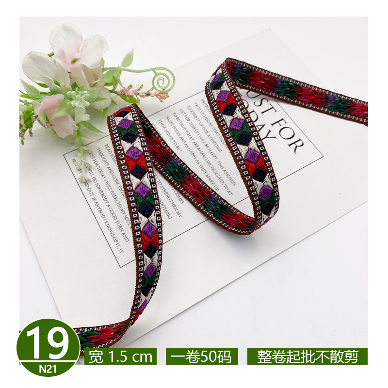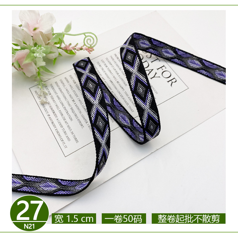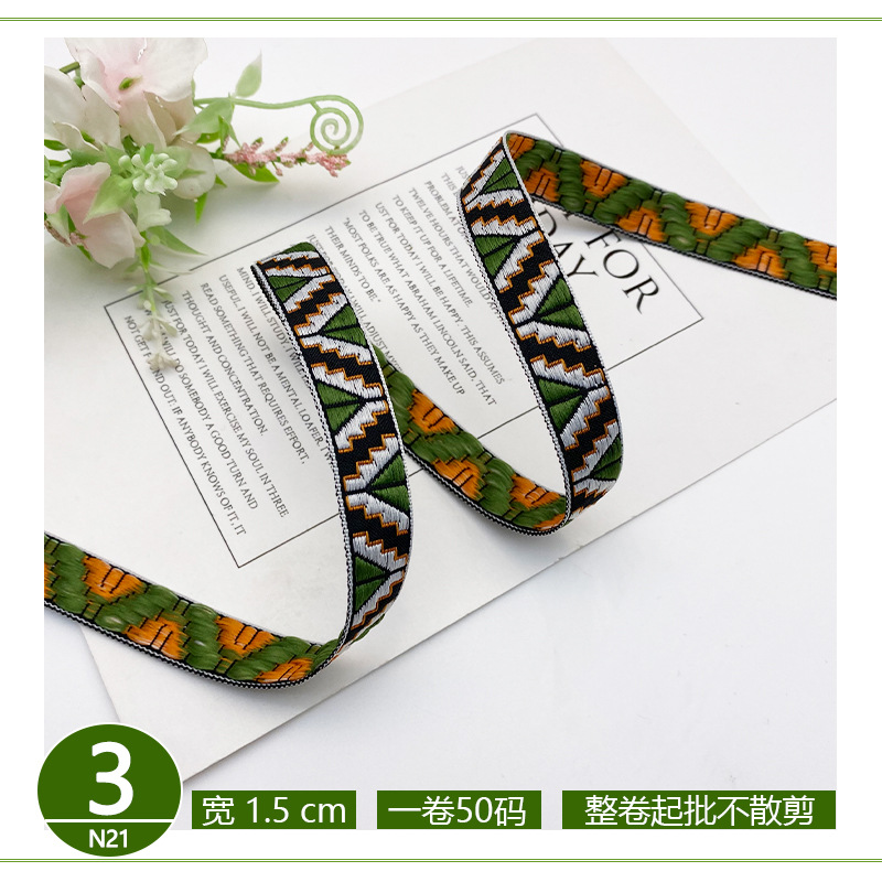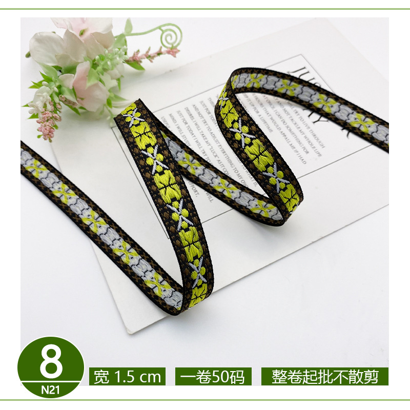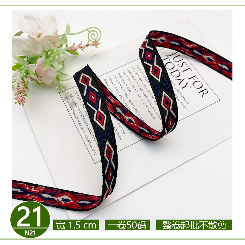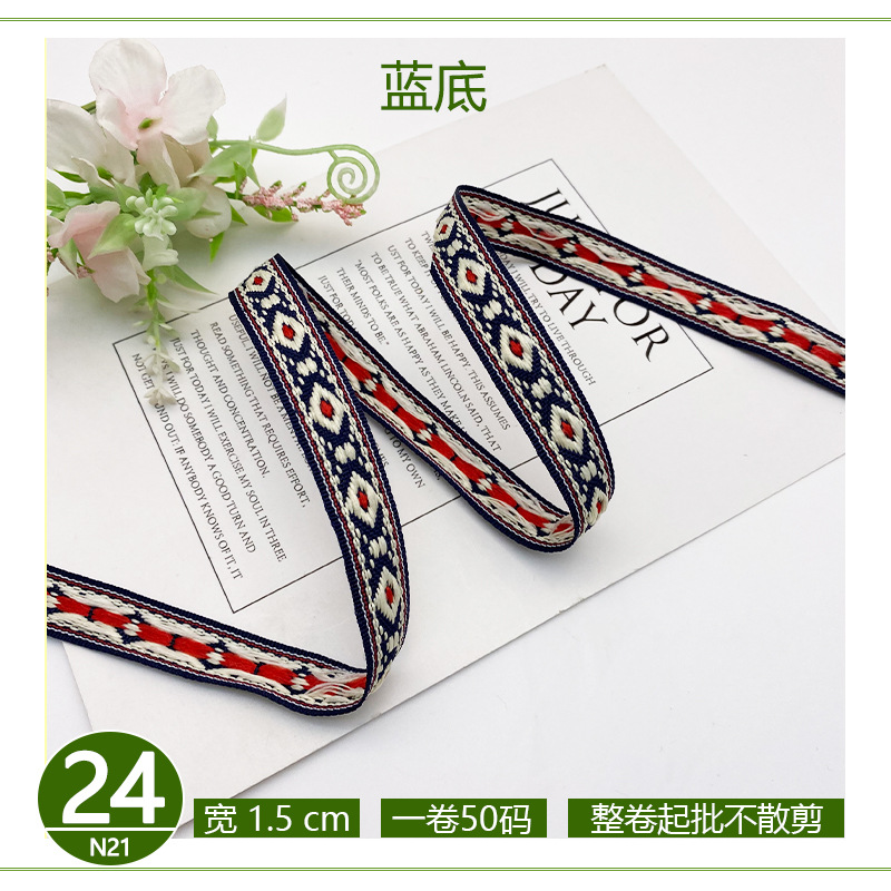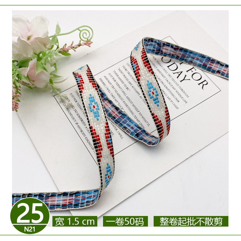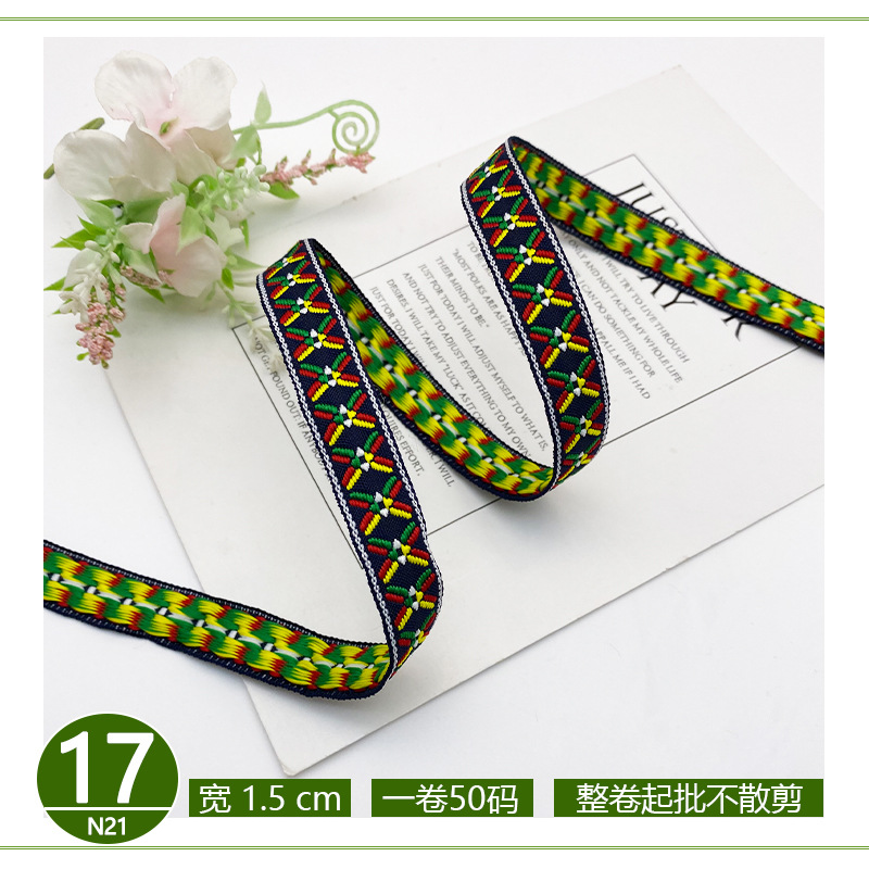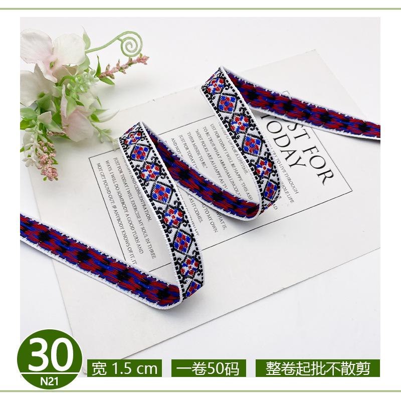 공장 직접 폴리 에스테르 리본 국가 스타일 자카드 벨트 술 레이스 의류 액세서리 가방 모자 장식 스트립스토어 가기