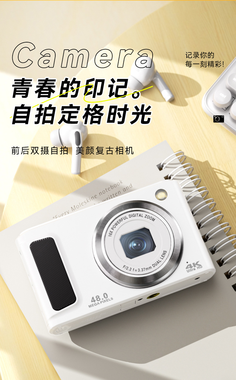 국경 4K HD 디지털 카메라 전면 및 후면 더블 사진 학생 파티 셀프 타이머 카메라 뷰티 홈 카메라 도매스토어 가기