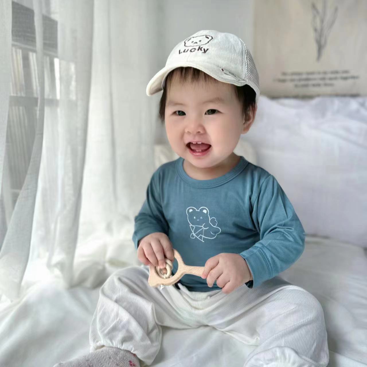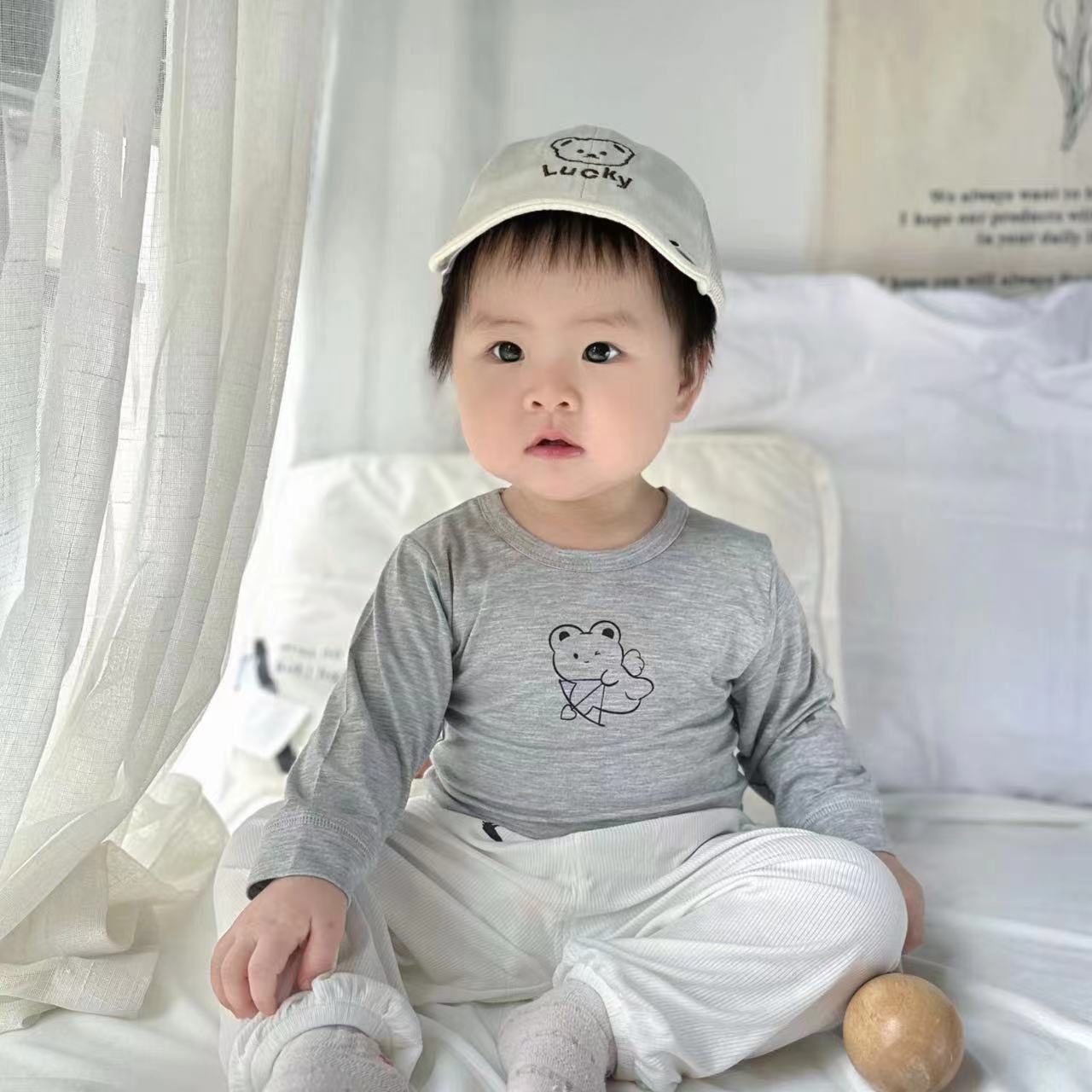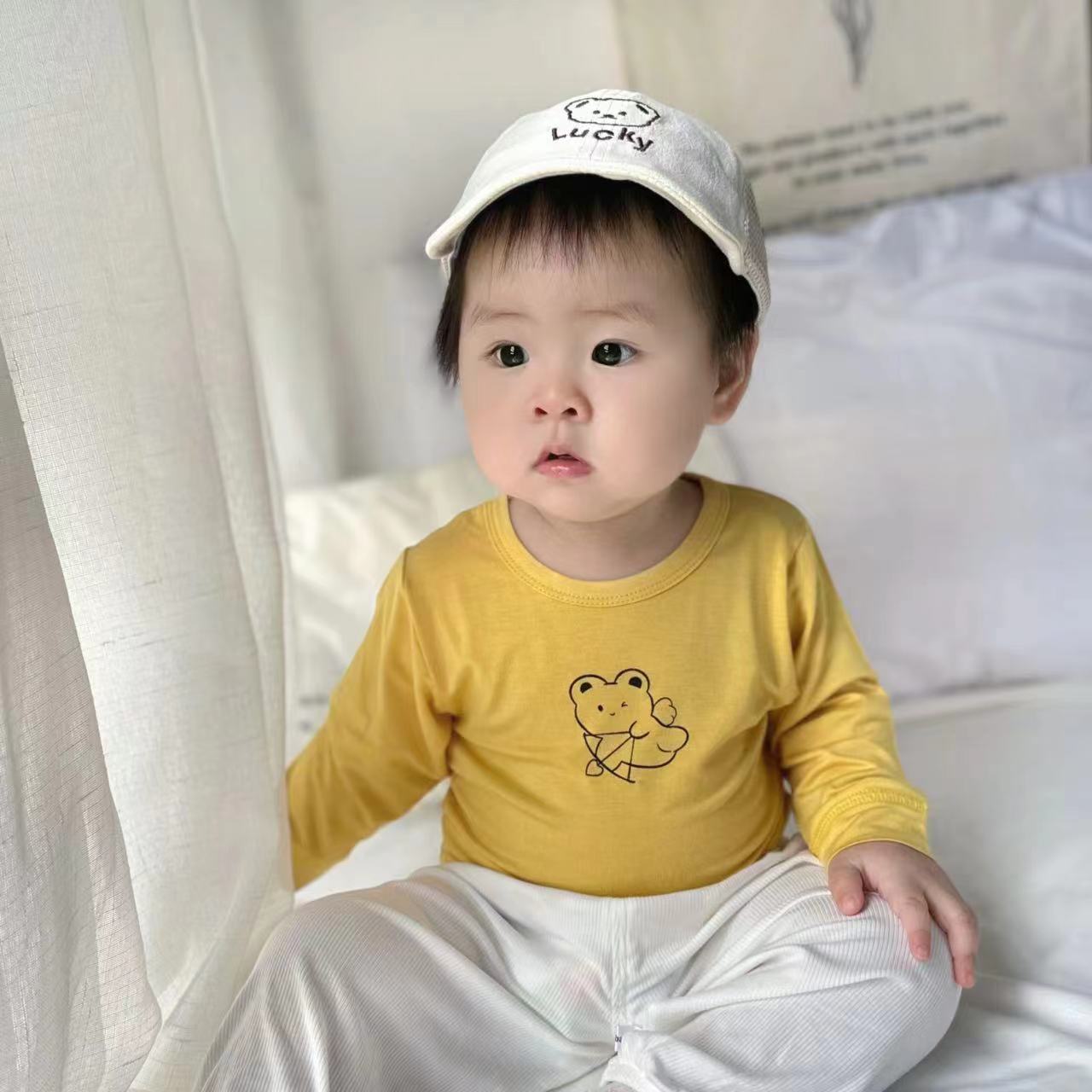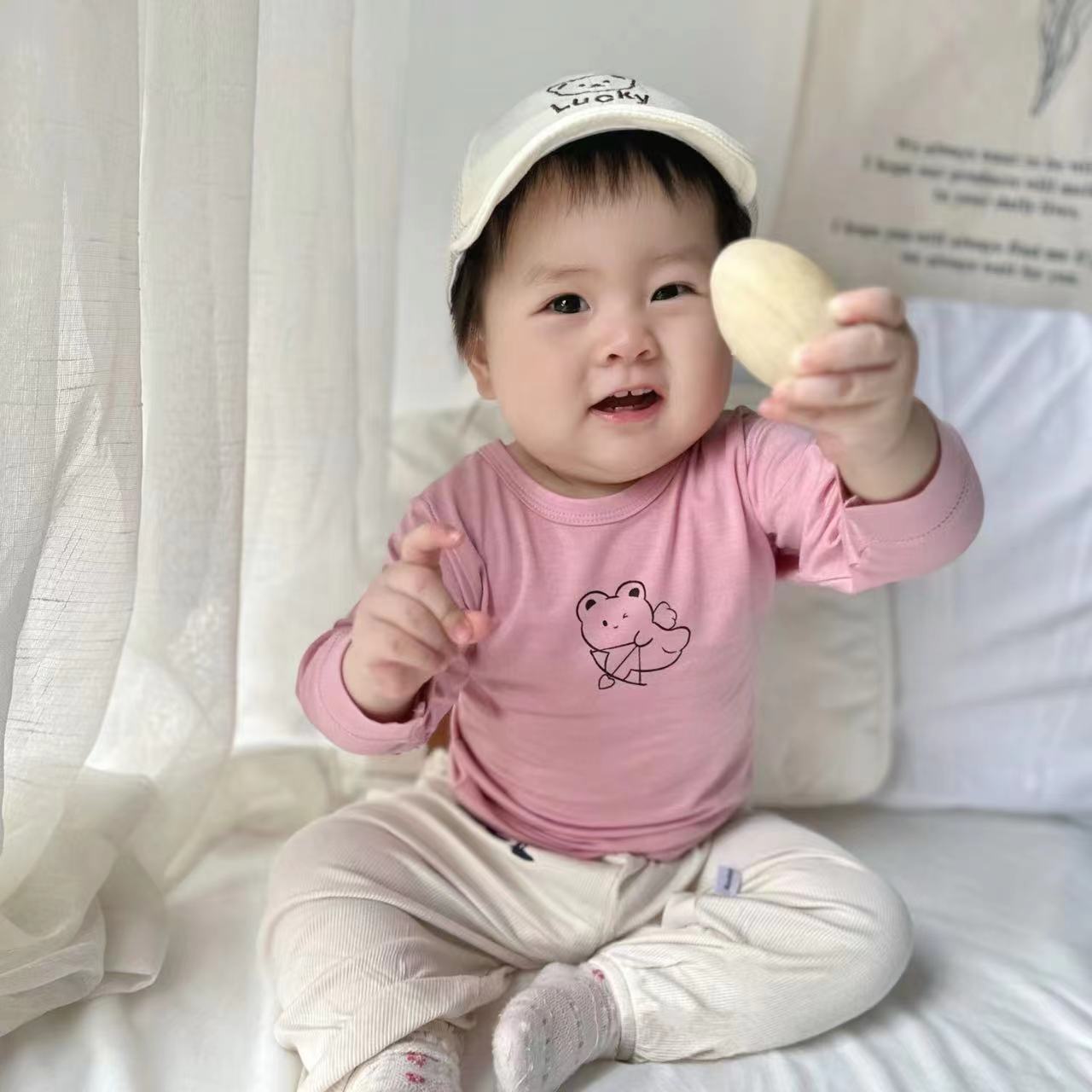 새로운 모달 캔디 T 귀여운 소년과 소녀 봄과 여름 긴 소매 아기 티셔츠베이스 홈 얇은 외주스토어 가기