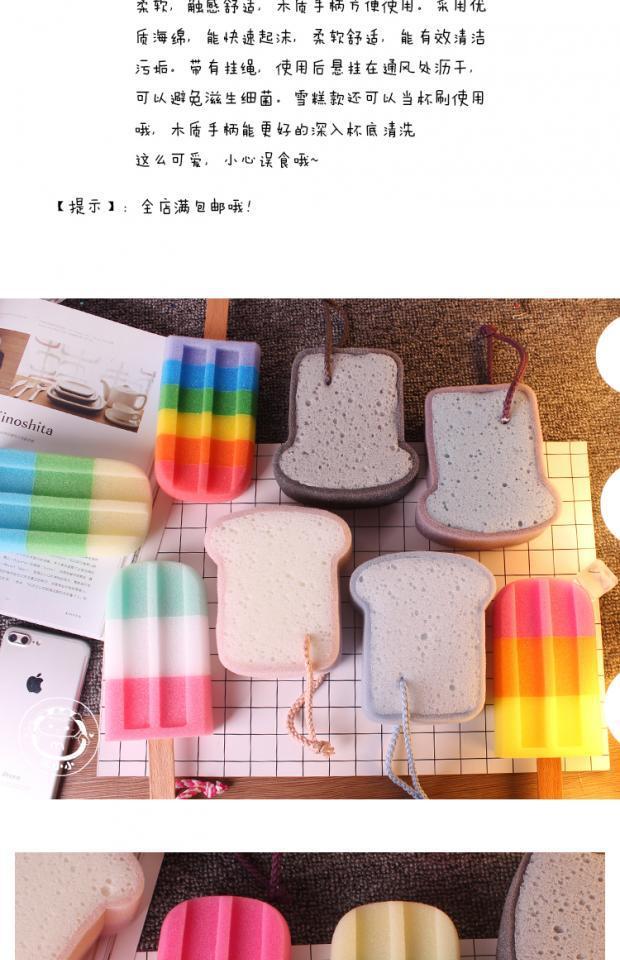 창조적 인 귀여운 아이스크림 토스트 목욕 꽃 장식품 컵 브러쉬 소녀의 심장 목욕 인공물 비 고무 스폰지스토어 가기